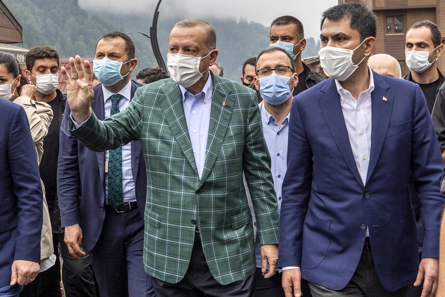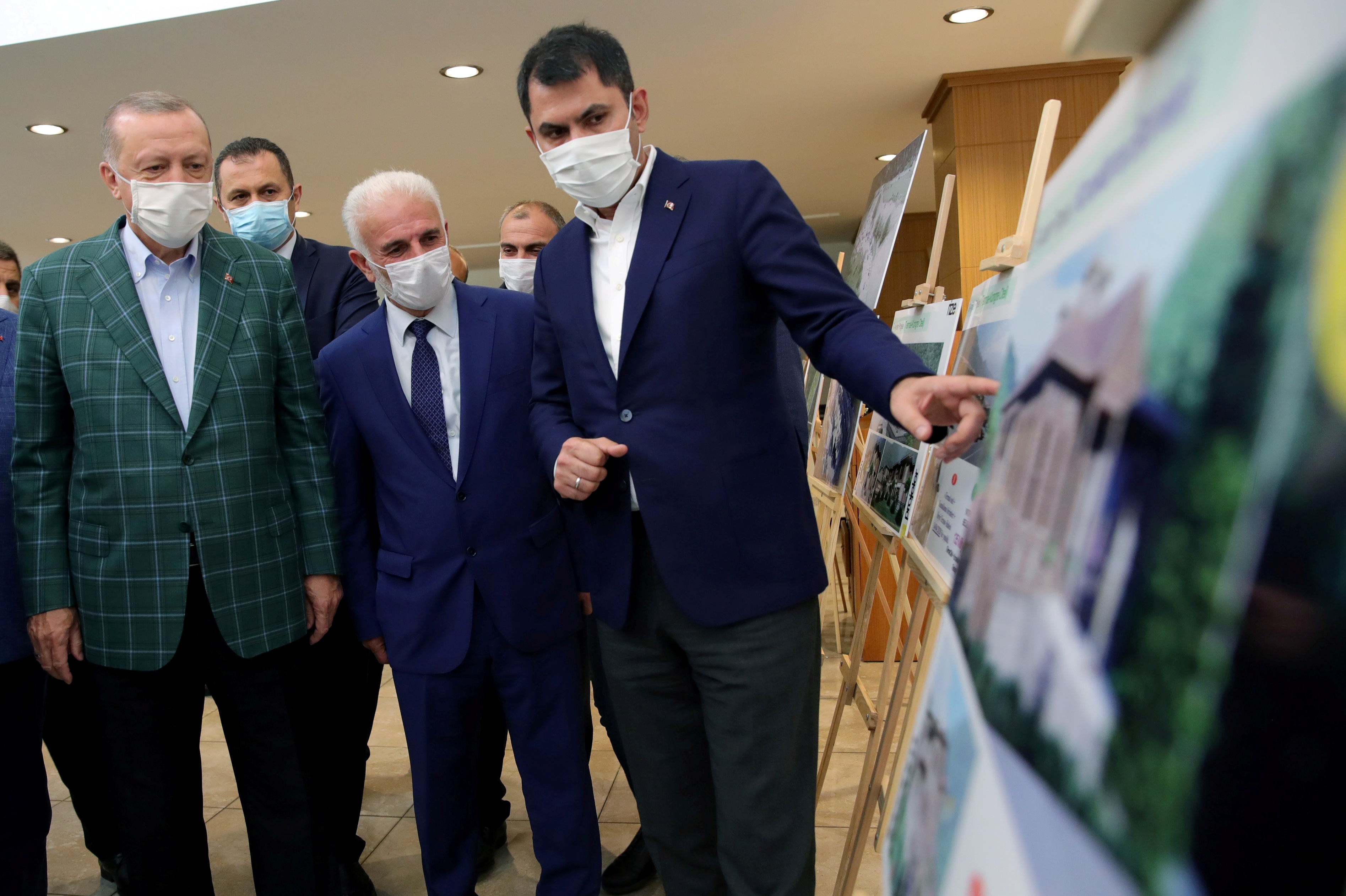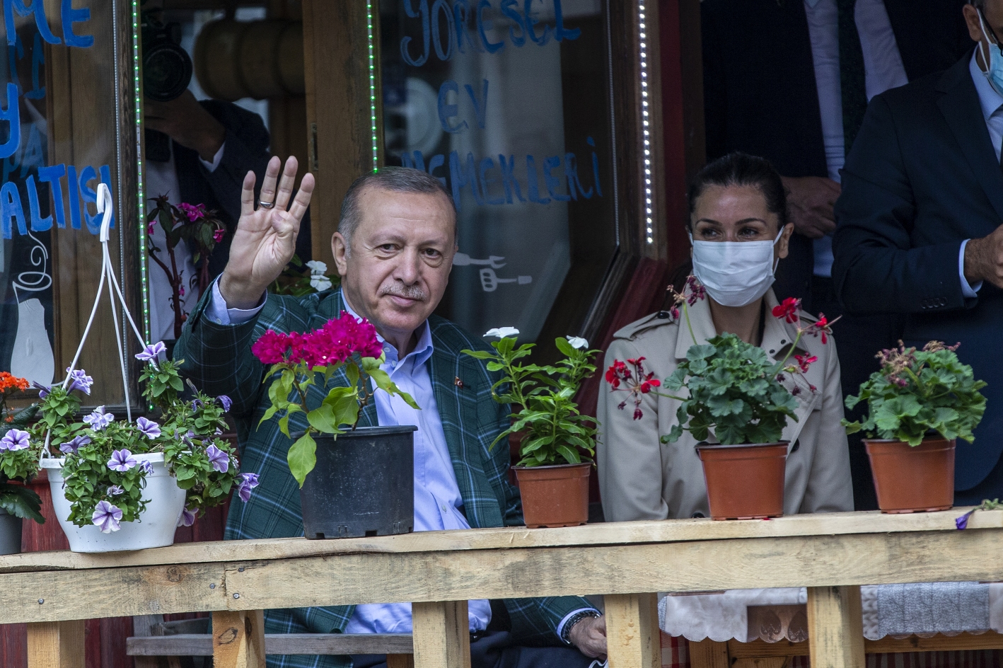 Cumhurbaşkanı Erdoğan'a, Çevre ve Şehircilik Bakanı Murat Kurum, Gençlik ve Spor Bakanı Mehmet Muharram Kasapoğlu, İçişleri Bakanı Süleyman Soylu, AK Parti Genel Başkan Yardımcıları Hayati Yazıcı ve Çiğdem Karaaslan ile İletişim Başkanı Fahrettin Altun eşlik etti.