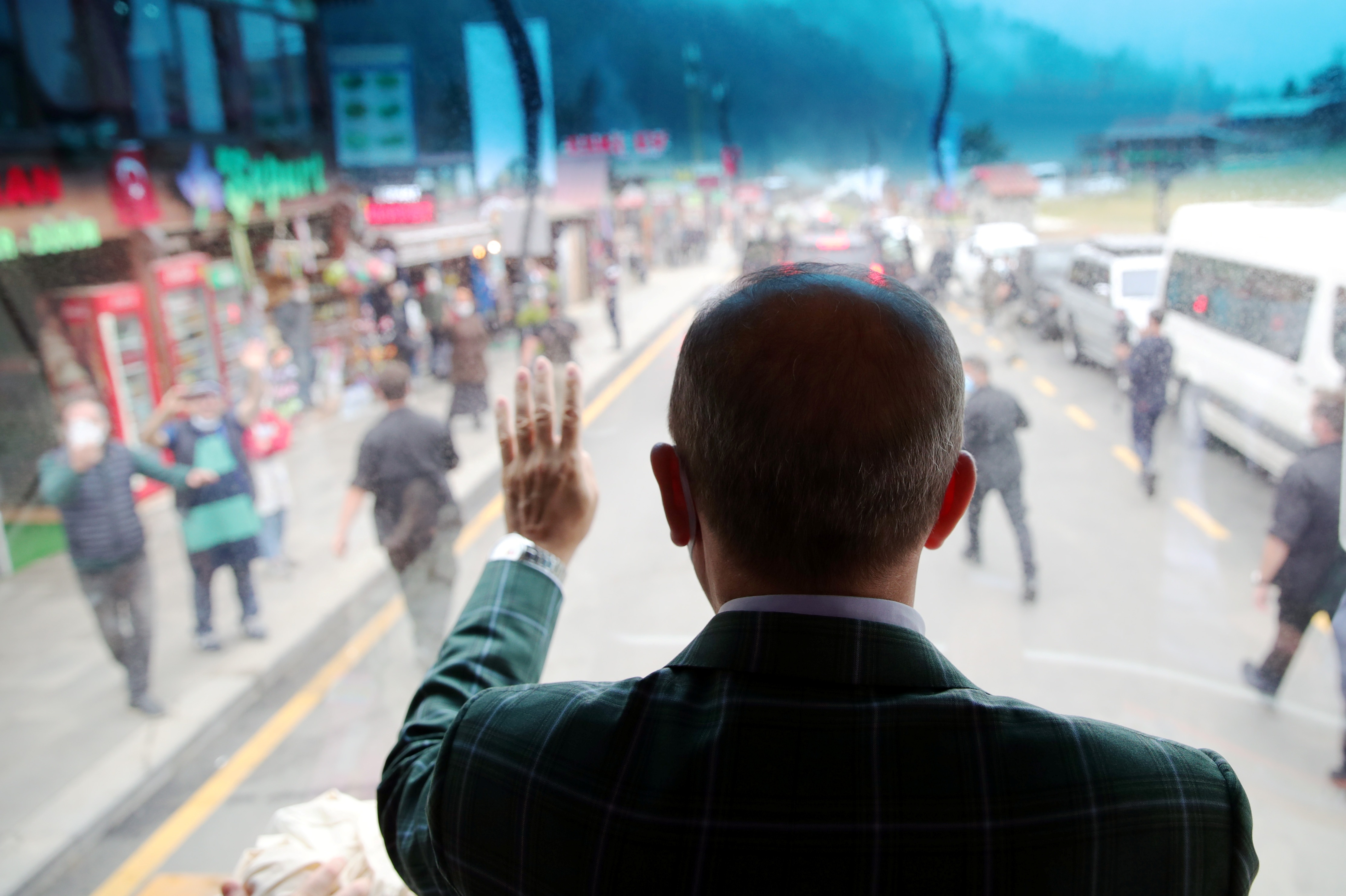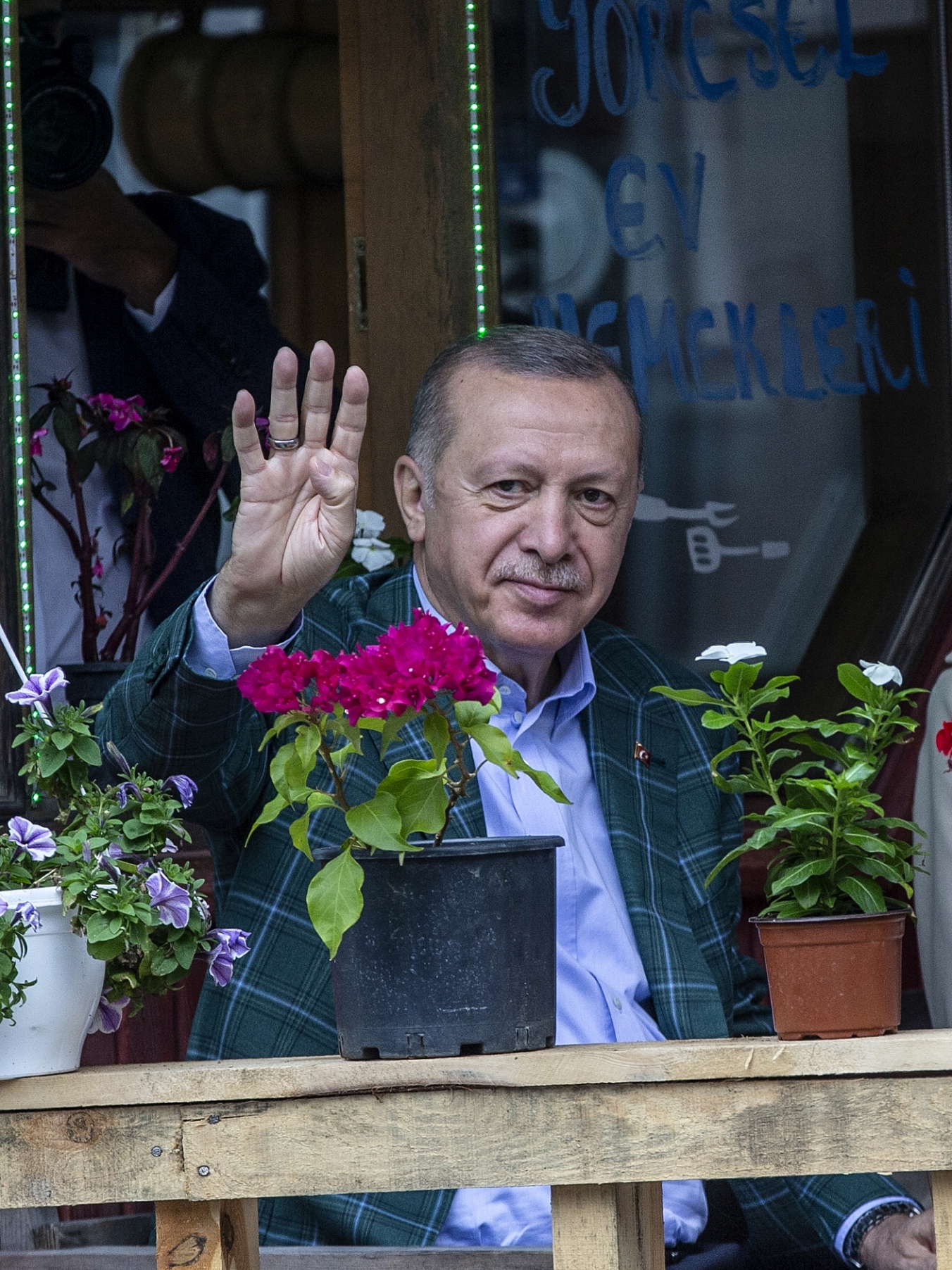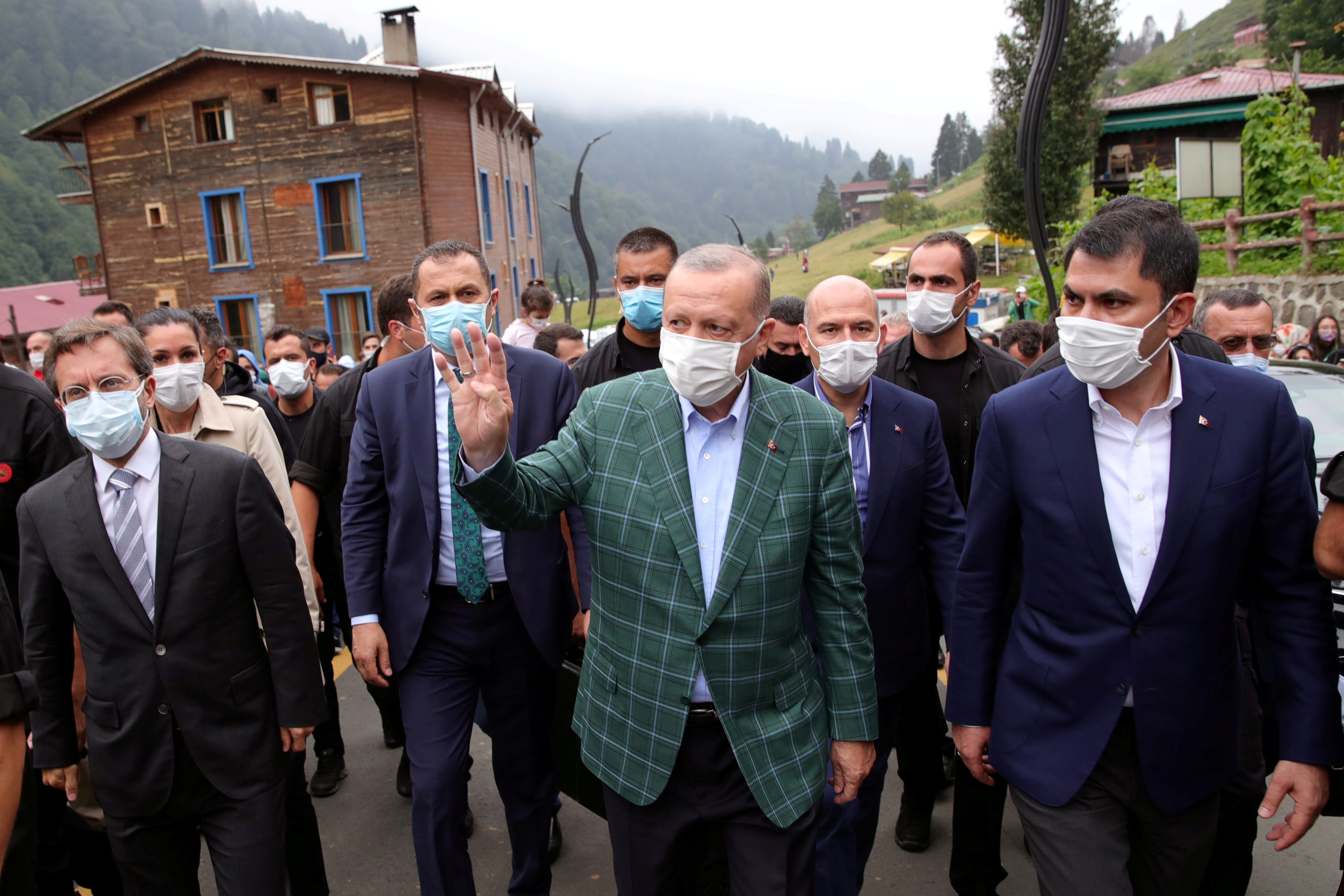 Cumhurbaşkanı Erdoğan'a, Çevre ve Şehircilik Bakanı Murat Kurum, Gençlik ve Spor Bakanı Mehmet Muharram Kasapoğlu, İçişleri Bakanı Süleyman Soylu, AK Parti Genel Başkan Yardımcıları Hayati Yazıcı ve Çiğdem Karaaslan ile İletişim Başkanı Fahrettin Altun eşlik etti.