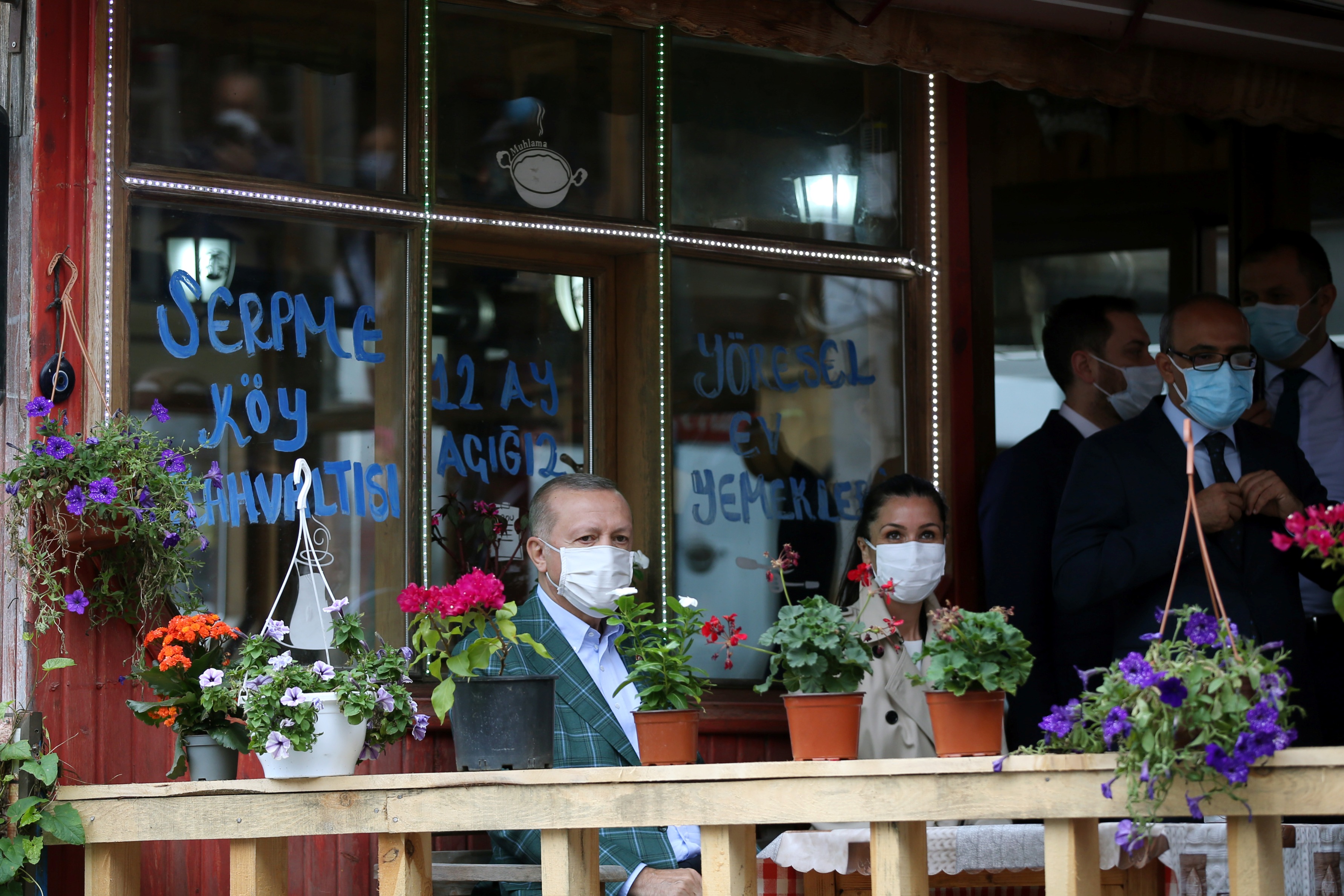 Cumhurbaşkanı Recep Tayyip Erdoğan, daha sonra bir kafede kendisine ikram edilen kahveyi içti.