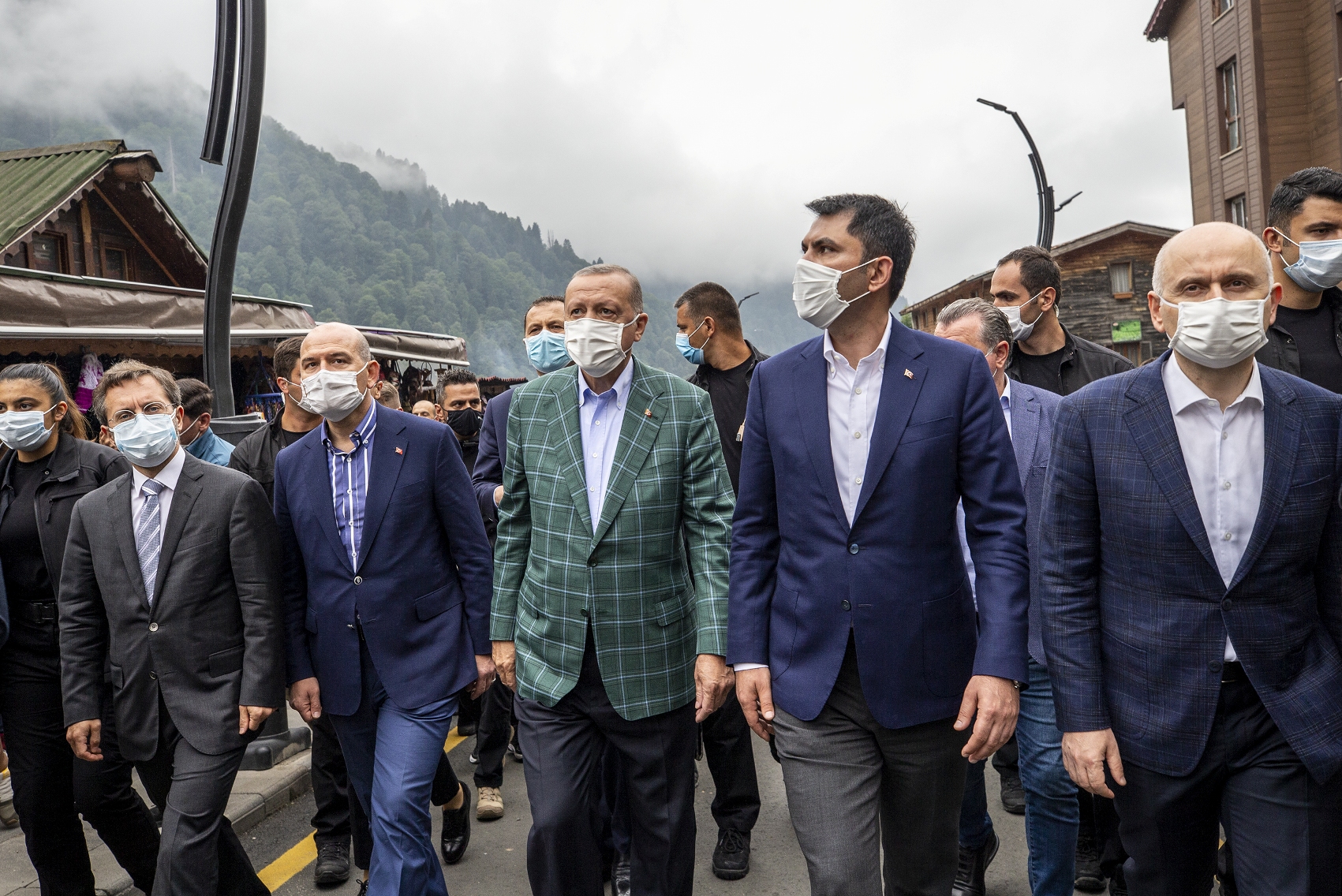 Cumhurbaşkanı Recep Tayyip Erdoğan, Rize'nin Çamlıhemşin ilçesine bağlı Ayder Yaylası'nda Çevre ve Şehircilik Bakanlığınca yapılan çalışmaları yerinde inceledi.