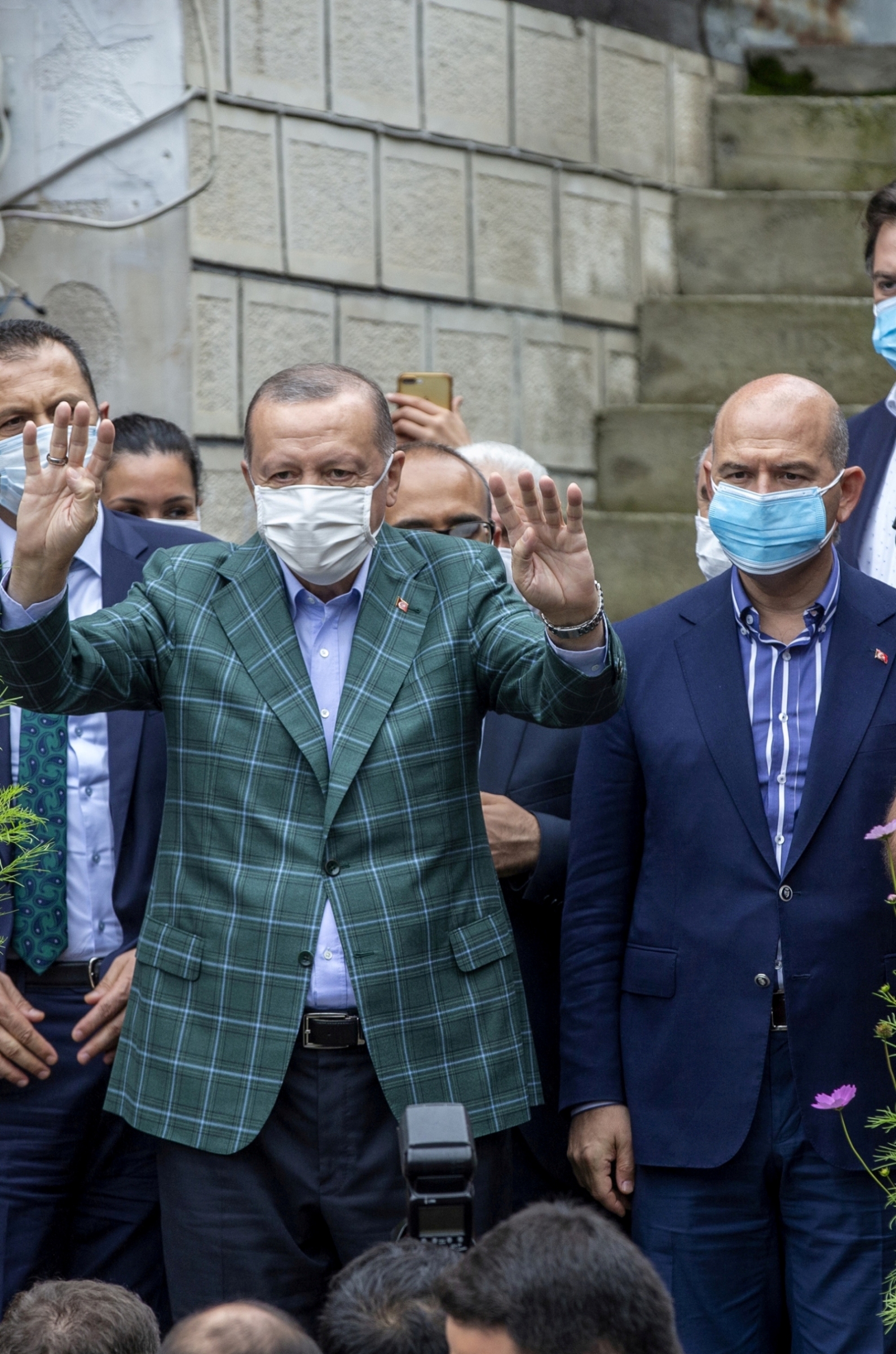 Yol boyunca kendisini karşılayan vatandaşları selamlayan Erdoğan, bölgede yapılan çalışmalar hakkında yetkililerden bilgi aldı.