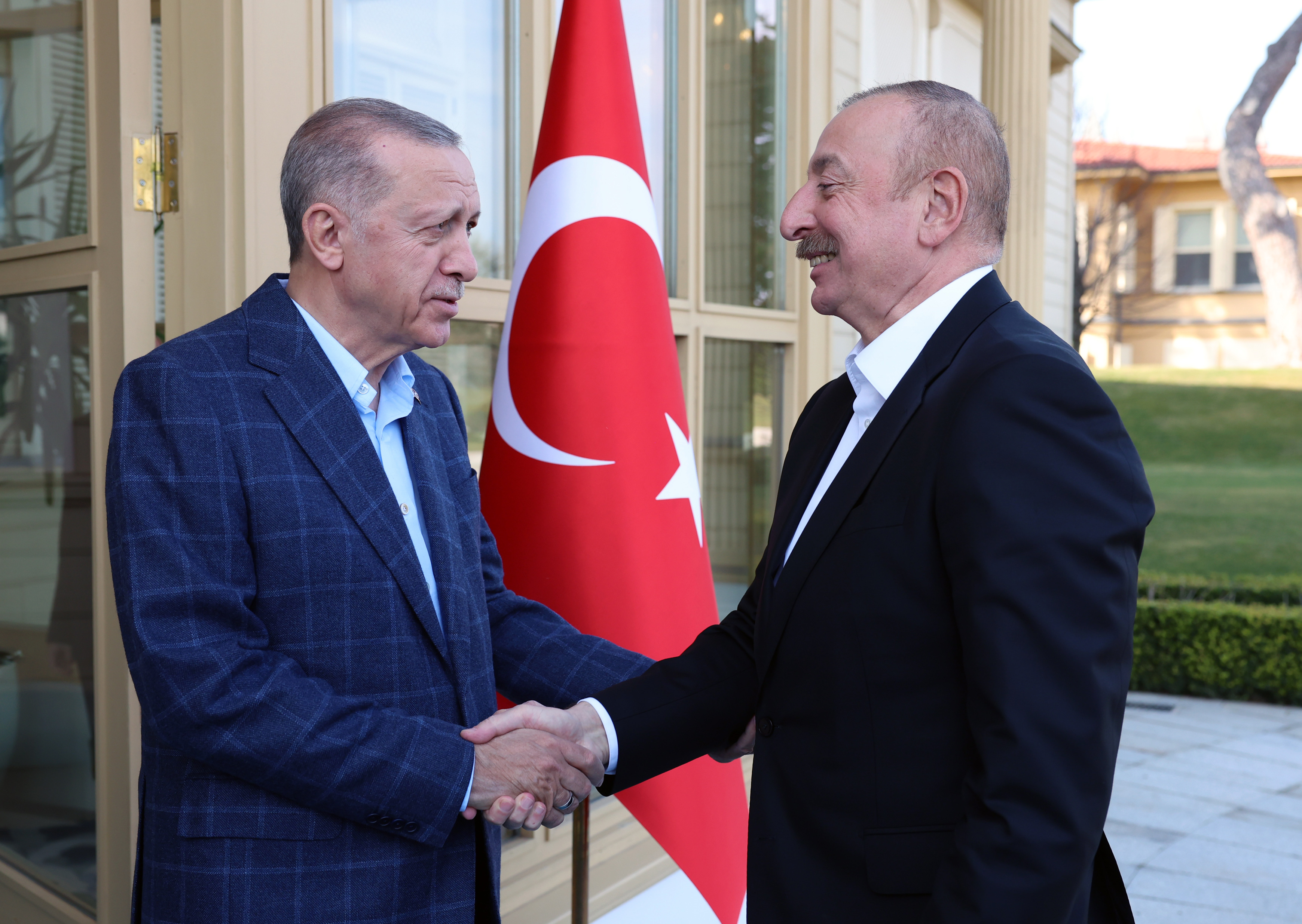 Cumhurbaşkanı Recep Tayyip Erdoğan, Türkiye'deki depremlerin ardından taziye ve destek ziyaretinde bulunan Aliyev'i Vahdettin Köşkü'nde ağırladı.
