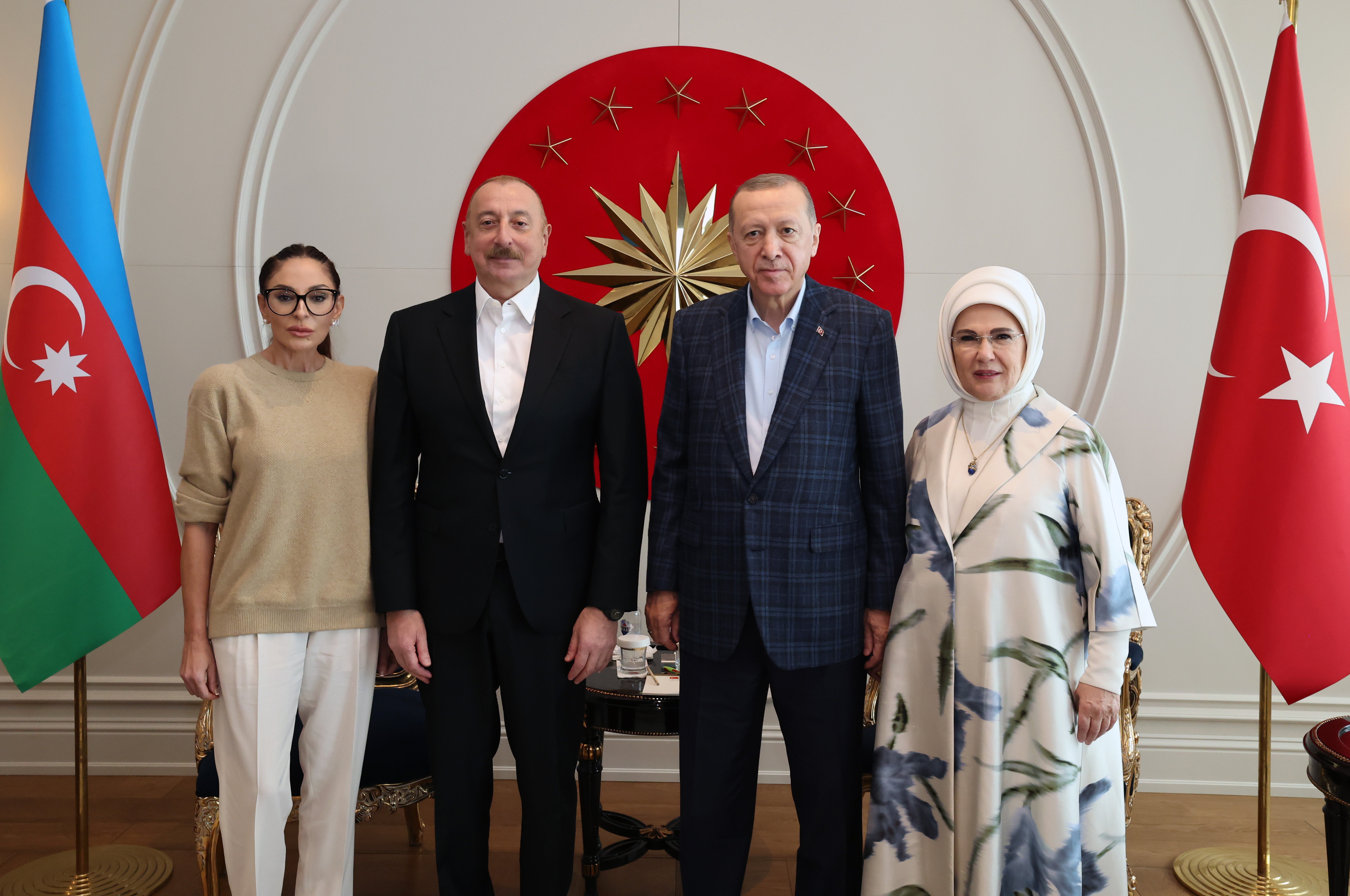 Görüşmede, Cumhurbaşkanı Erdoğan ve eşi Emine Erdoğan ile Azerbaycan Cumhurbaşkanı İlham Aliyev ve eşi Mihriban Aliyeva toplu fotoğraf da çektirdi.