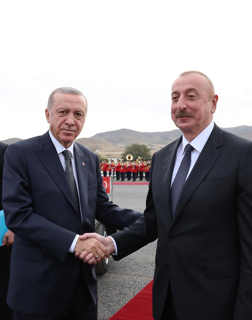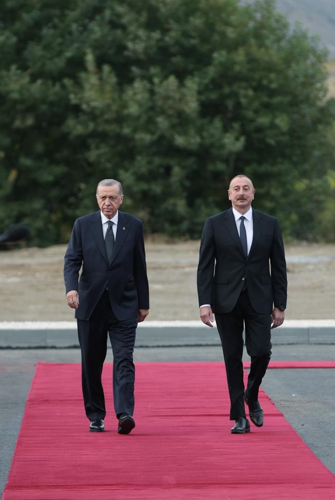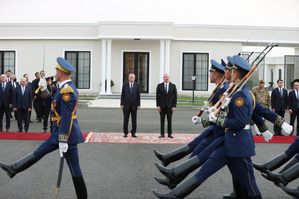 Cumhurbaşkanı Recep Tayyip Erdoğan, ziyarette bulunduğu Azerbaycan'ın Cebrayıl şehrinde, Cumhurbaşkanı İlham Aliyev tarafından resmî törenle karşılandı.