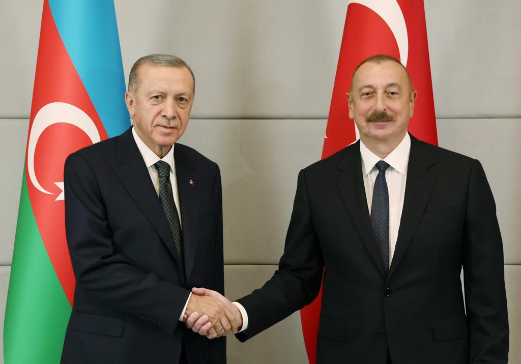 Cumhurbaşkanı Aliyev ile tören kıtasını denetleyen Cumhurbaşkanı Erdoğan, askerleri selamladı. İki lider, heyetlerini birbirlerine takdim etmelerinin ardından, baş başa görüşmeye geçti.