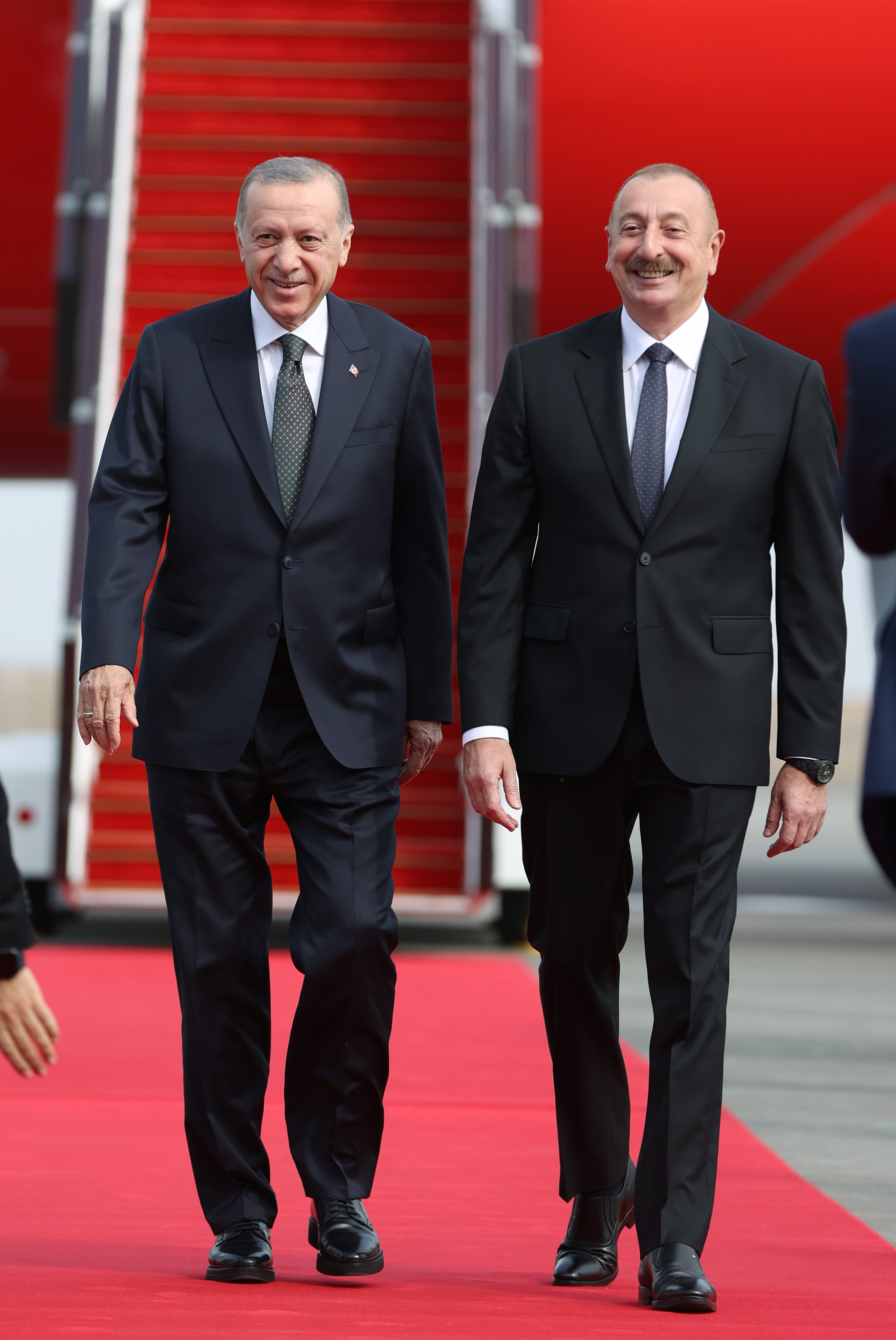 Azerbaycan Cumhurbaşkanı İlham Aliyev tarafından karşılanan Cumhurbaşkanı Erdoğan, yapımı tamamlanan havalimanına inen ilk devlet başkanı oldu.