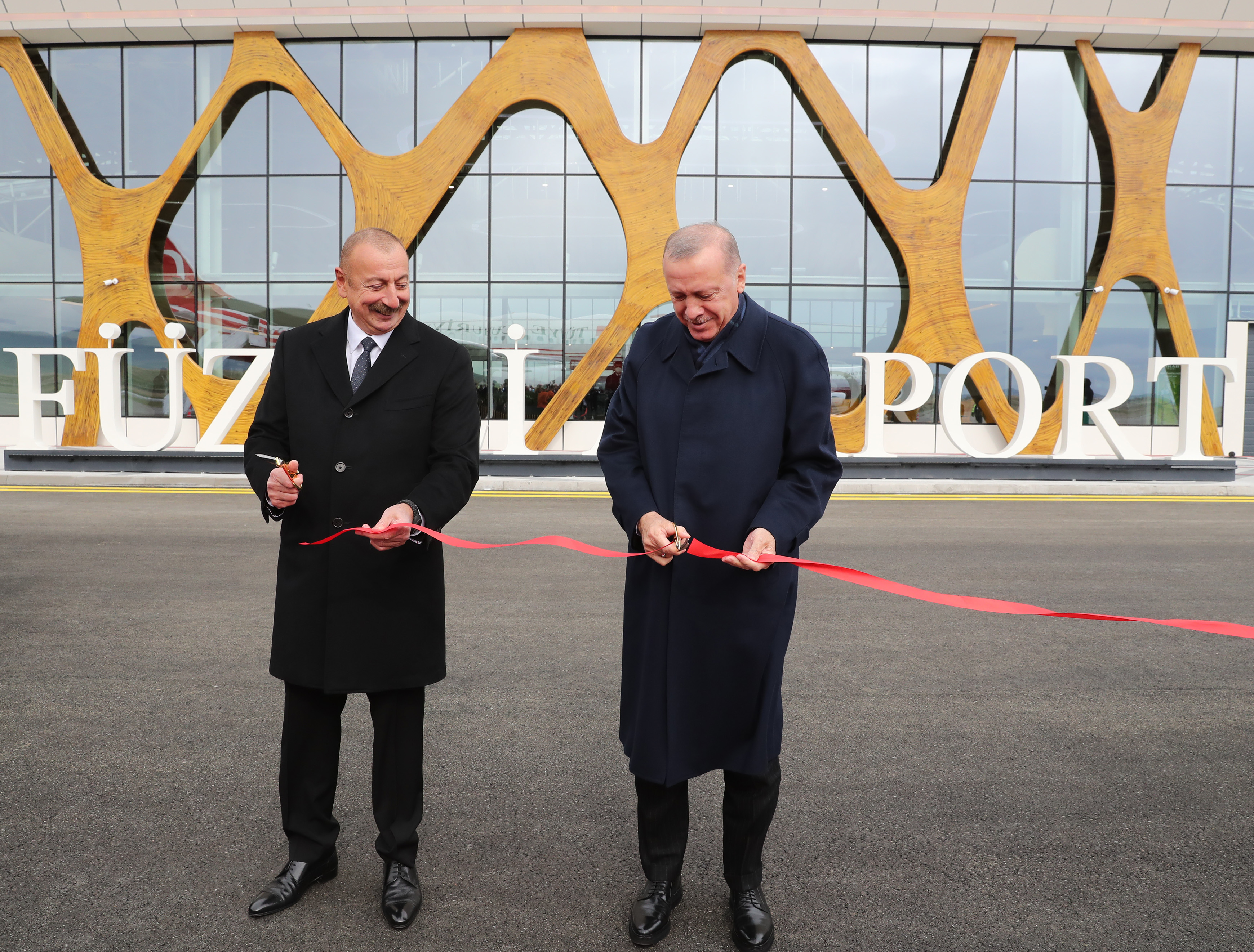 Yeni havalimanının açılış kurdelesini kesen Cumhurbaşkanı Erdoğan ve Azerbaycan Cumhurbaşkanı Aliyev, daha sonra havalimanı binasını gezip, yetkililerden bilgi aldı.