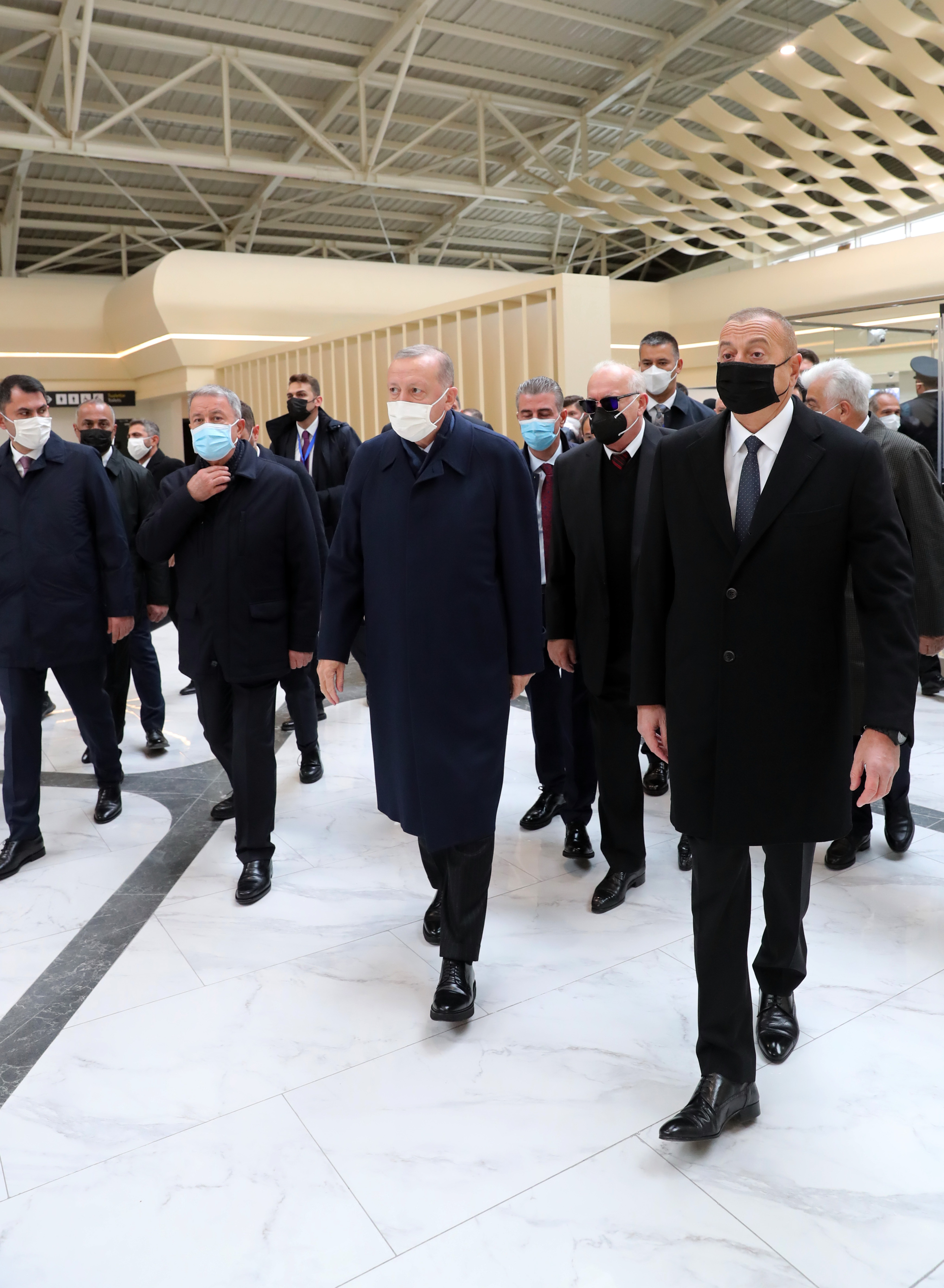 Cumhurbaşkanı Erdoğan ile Çevre ve Şehircilik Bakanı Murat Kurum, Dışişleri Bakanı Mevlüt Çavuşoğlu, Milli Savunma Bakanı Hulusi Akar, Ulaştırma ve Altyapı Bakanı Adil Karaismailoğlu, Cumhurbaşkanlığı İletişim Başkanı Fahrettin Altun ve Cumhurbaşkanlığı Sözcüsü İbrahim Kalın da Azerbaycan'a geldi.