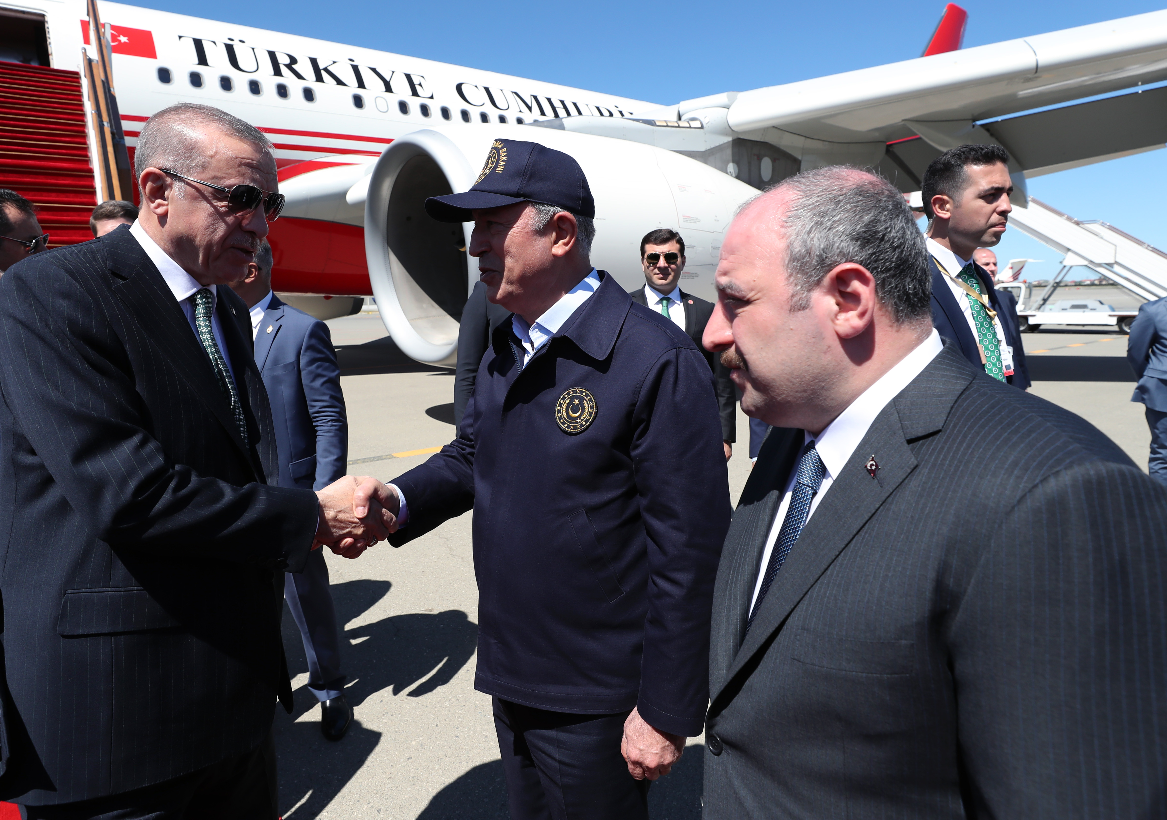 İstanbul Sabiha Gökçen Uluslararası Havalimanı'ndan Bakü Haydar Aliyev Havalimanı'na TSİ 13.30'da varan Cumhurbaşkanı Erdoğan'ı, Azerbaycan Başbakan Yardımcısı Yagub Eyyubov, Dışişleri Bakan Yardımcısı Halef Halefov, Azerbaycan'ın Ankara Büyükelçisi Reşad Memmedov, Türkiye'nin Bakü Büyükelçisi Cahit Bağcı, Askeri Ataşe Tuğgeneral Zekeriya Yalçın, Azerbaycan Görev Grup Komutanı Tümgeneral Bahtiyar Ersay karşıladı.