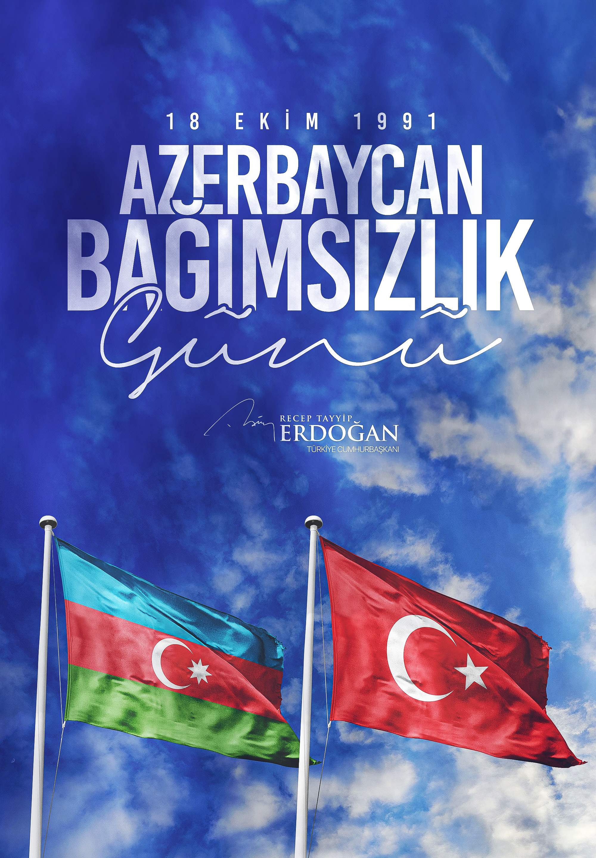 Cumhurbaşkanı Recep Tayyip Erdoğan, sosyal medya hesabından Azerbaycan'ın Bağımsızlık Günü dolayısıyla kutlama mesajı yayımladı.