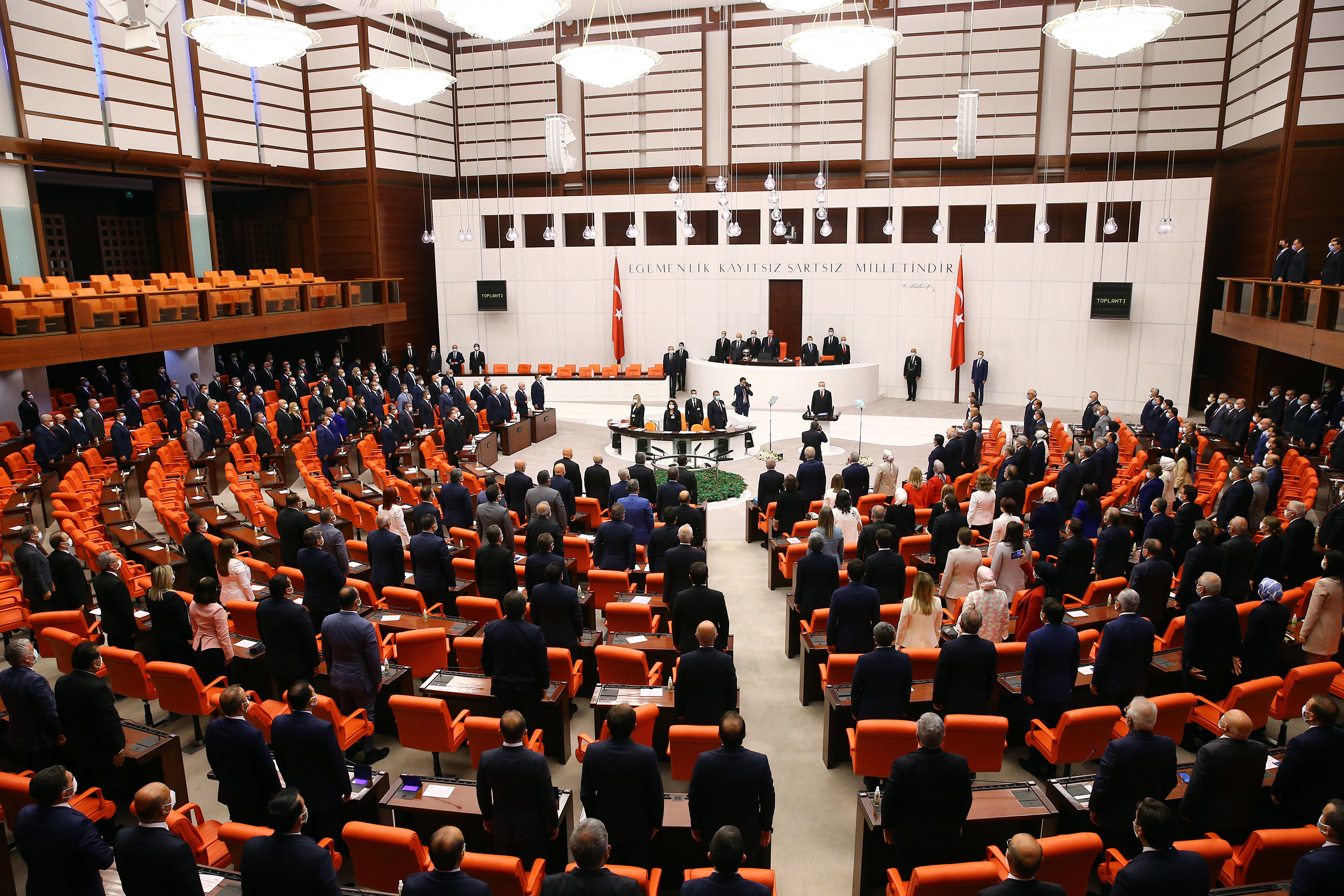 "Böyle bir ülke, kökü de geleneği de ahlakı da olmayan, gücünü sömürgecilikten ve açgözlülükten alan devletlerle aynı yöntemleri kullanamaz. Türkiye Büyük Millet Meclisimizin yasama alanında temsilcisi olduğu kadim ve asil duruş, evlatlarımıza bırakacağımız en kıymetli hazinedir. Ülkemizin terörle mücadelesinde ve uluslararası alanda haklarını koruma gayretlerinde net tutum sergileyen Meclisimizin tüm mensuplarına şükranlarımı sunuyorum. Aynı şekilde Kıbrıs ve Azerbaycan Türklerinden Balkanlar ve Kuzey Afrika'ya kadar her yerde kardeşlerimize samimi destek veren Meclisimiz, milletimizle birlikte tüm dostlarımızın da umut kaynağı olduğunu göstermiştir."