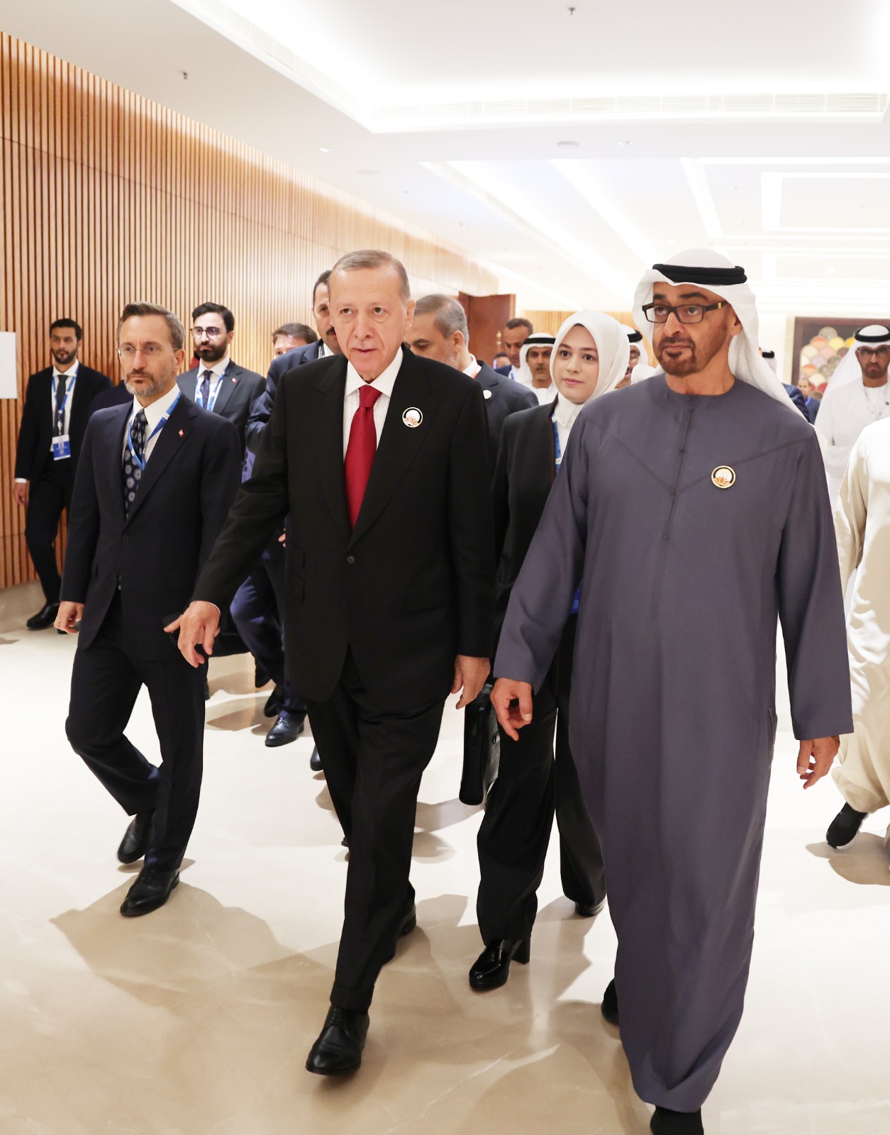 Cumhurbaşkanı Erdoğan, Bharat Mandapam Uluslararası Fuar ve Kongre Merkezi'nde "Tek Dünya" temasıyla gerçekleştirilen günün ilk oturumunun ardından BAE Devlet Başkanı Al Nahyan ile görüştü.