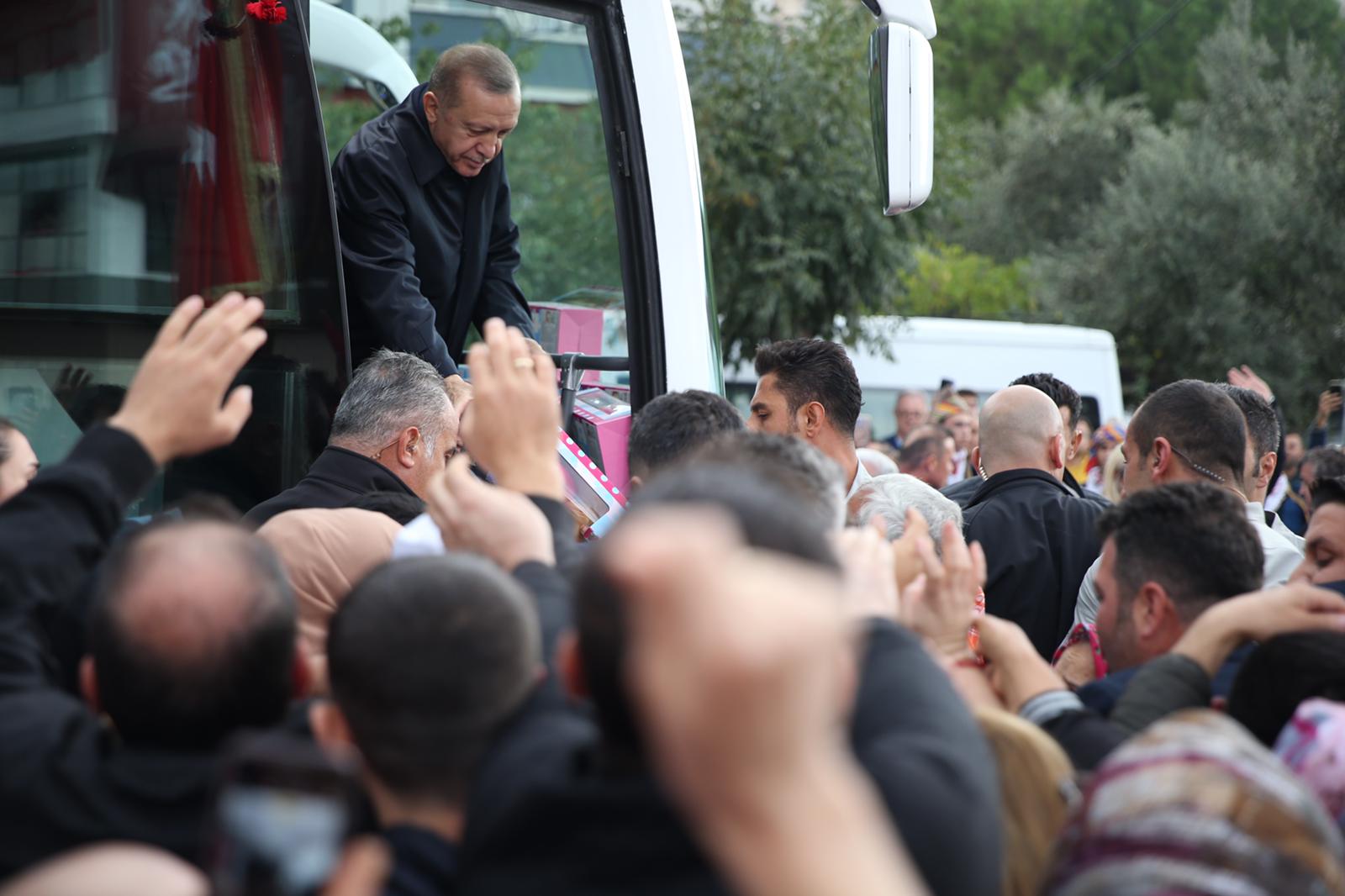 Cumhurbaşkanı Erdoğan tören öncesinde Cengiz Topel Caddesi'nden Kuva-yı Milliye Meydanı'na doğru ilerlerken vatandaşların yoğun ilgisiyle karşılaştı.