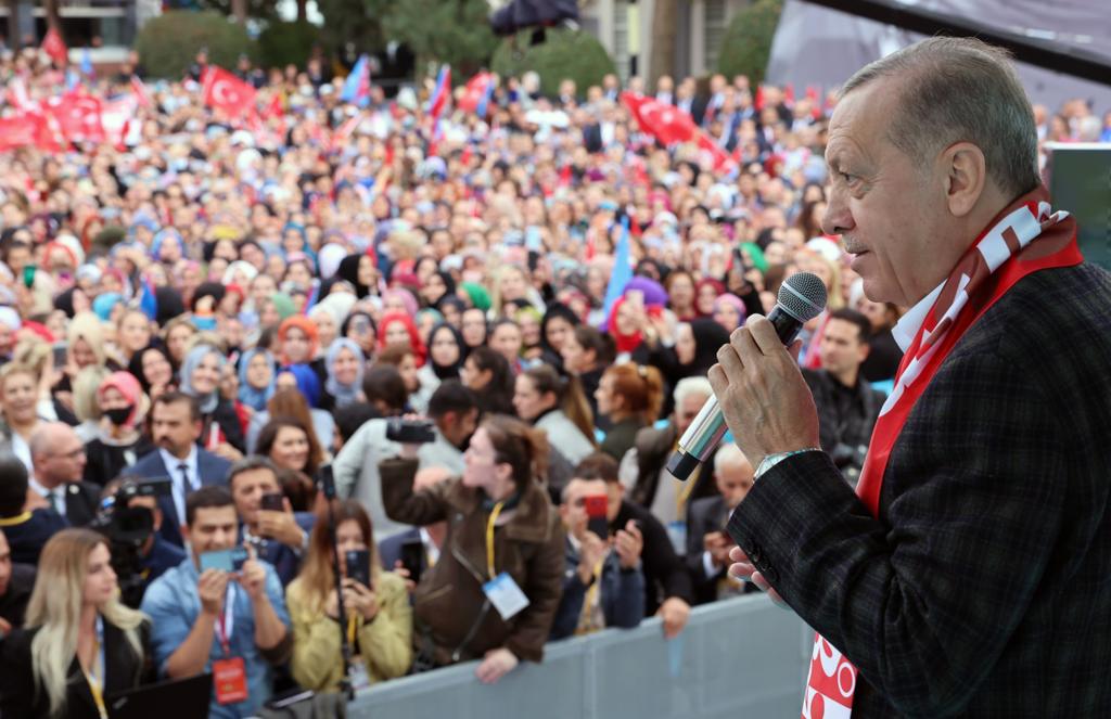 Ne kadar özetlerse özetlesin anlatmakla bitmeyen eser ve hizmetleri olduğunu dile getiren Cumhurbaşkanı Erdoğan, "Türkiye'yi 81 vilayetinin her biriyle nasıl bugüne eser ve hizmet siyasetimizle taşımışsak, inşallah -şimdi bir başlık atıyorum- Türkiye yüzyılına giden yolu da aynı şekilde inşa edeceğiz. Bu seçimlerin başlığı ne? Türkiye yüzyılı. Sizler Türkiye'yi eski, istikrarsız, özgüvensiz, yoklukların ve zulümlerin dönemlerine çevirmek isteyenleri de biliyorsunuz. Türkiye yüzyılı için mücadele edenleri de biliyorsunuz. Balıkesir'in tercihi ne olursa olsun başımızın üzerindedir. Çünkü biz bu ülkeyi, bu şehri ve tüm insanlarımızı Allah için seviyoruz." diye konuştu.