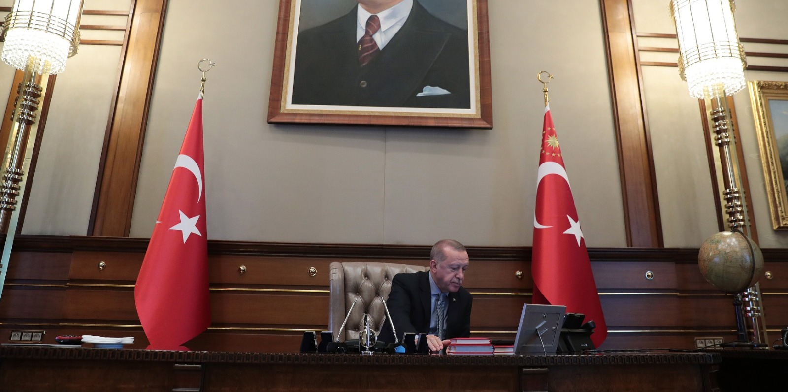 Cumhurbaşkanı Erdoğan, Cumhurbaşkanlığı Külliyesi'nde kabul ettiği TBMM Başkanı Mustafa Şentop'a Barış Pınarı Harekatı ile ilgili bilgi verdi.
