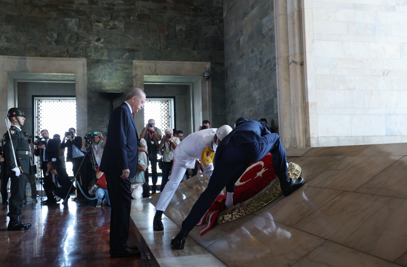 Cumhurbaşkanı Recep Tayyip Erdoğan başkanlığındaki devlet erkânı, 30 Ağustos Zafer Bayramı ve Türk Silahlı Kuvvetleri Günü dolayısıyla Anıtkabir'e ziyarette bulundu.