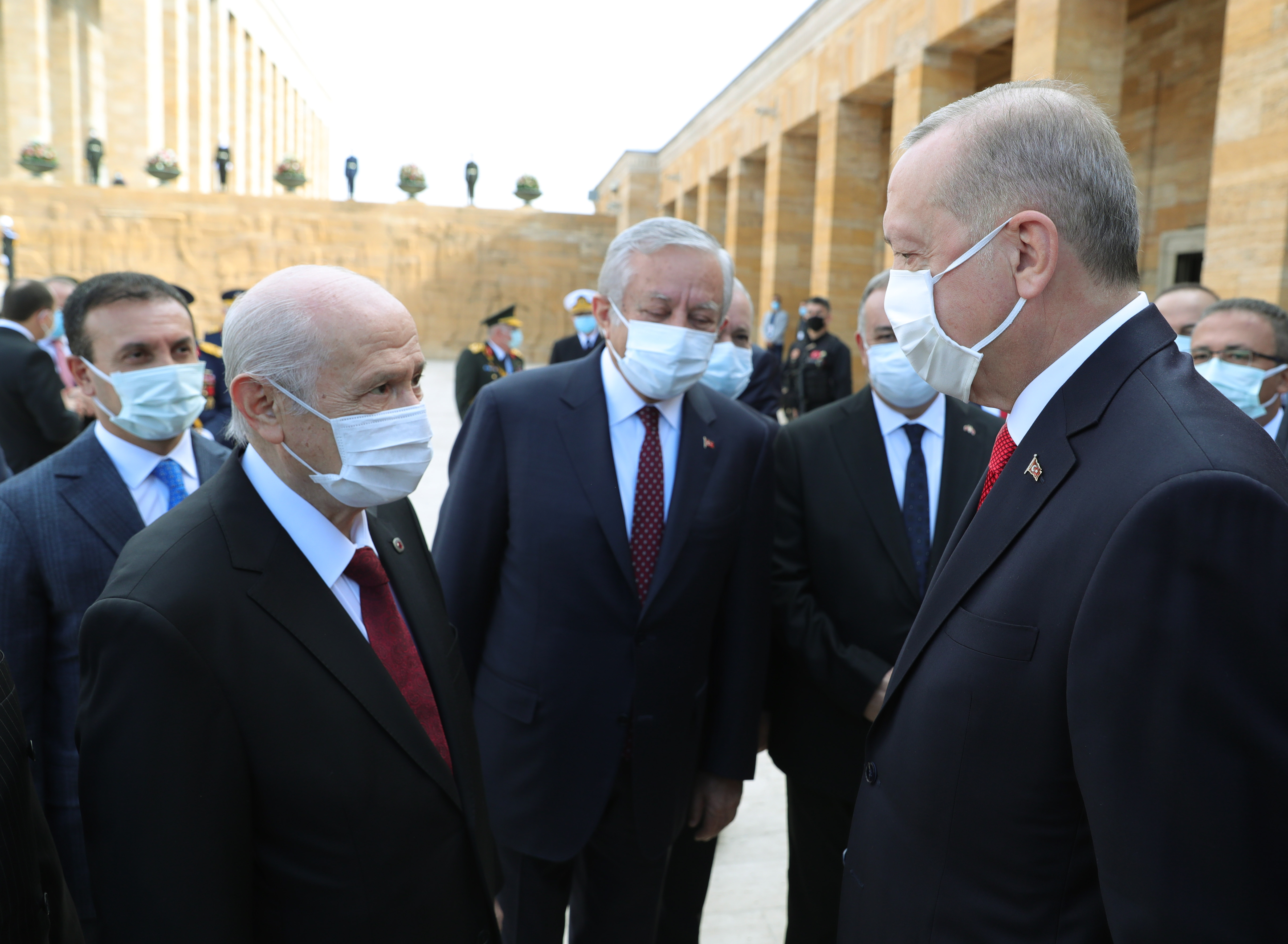 Cumhurbaşkanı Erdoğan'ın Aslanlı Yol'un başındaki yerini almasının ardından başlayan törende, Türkiye Büyük Millet Meclisi Başkanı Mustafa Şentop, Cumhurbaşkanı Yardımcısı Fuat Oktay, CHP Genel Başkanı Kemal Kılıçdaroğlu, MHP Genel Başkanı Devlet Bahçeli, İYİ Parti Genel Başkanı Meral Akşener, Cumhurbaşkanlığı Kabinesi üyeleri, yüksek yargı organlarının başkanları, Genelkurmay Başkanı Orgeneral Yaşar Güler ve kuvvet komutanları da Aslanlı Yol'dan geçerek, mozoleye çıktı.