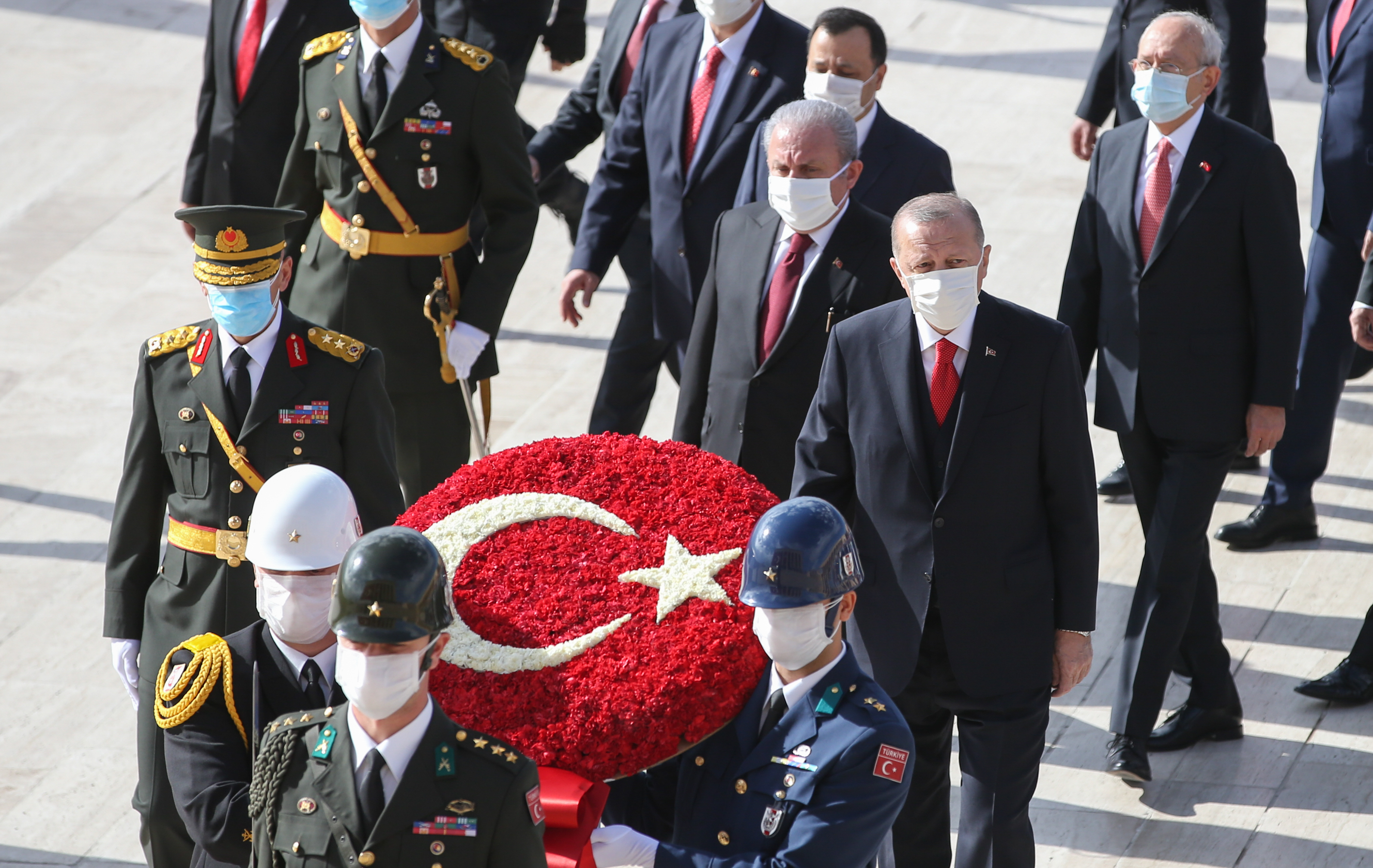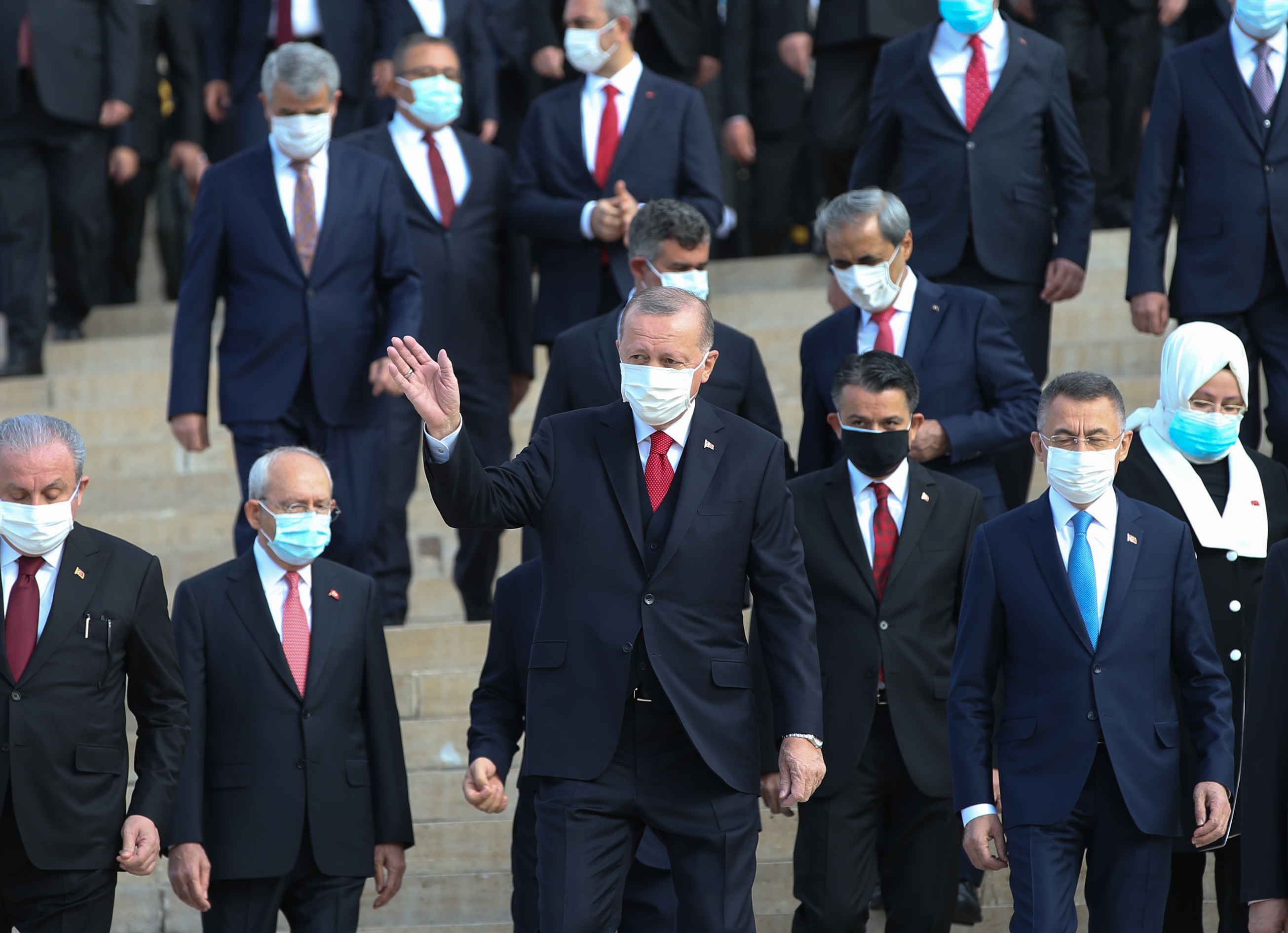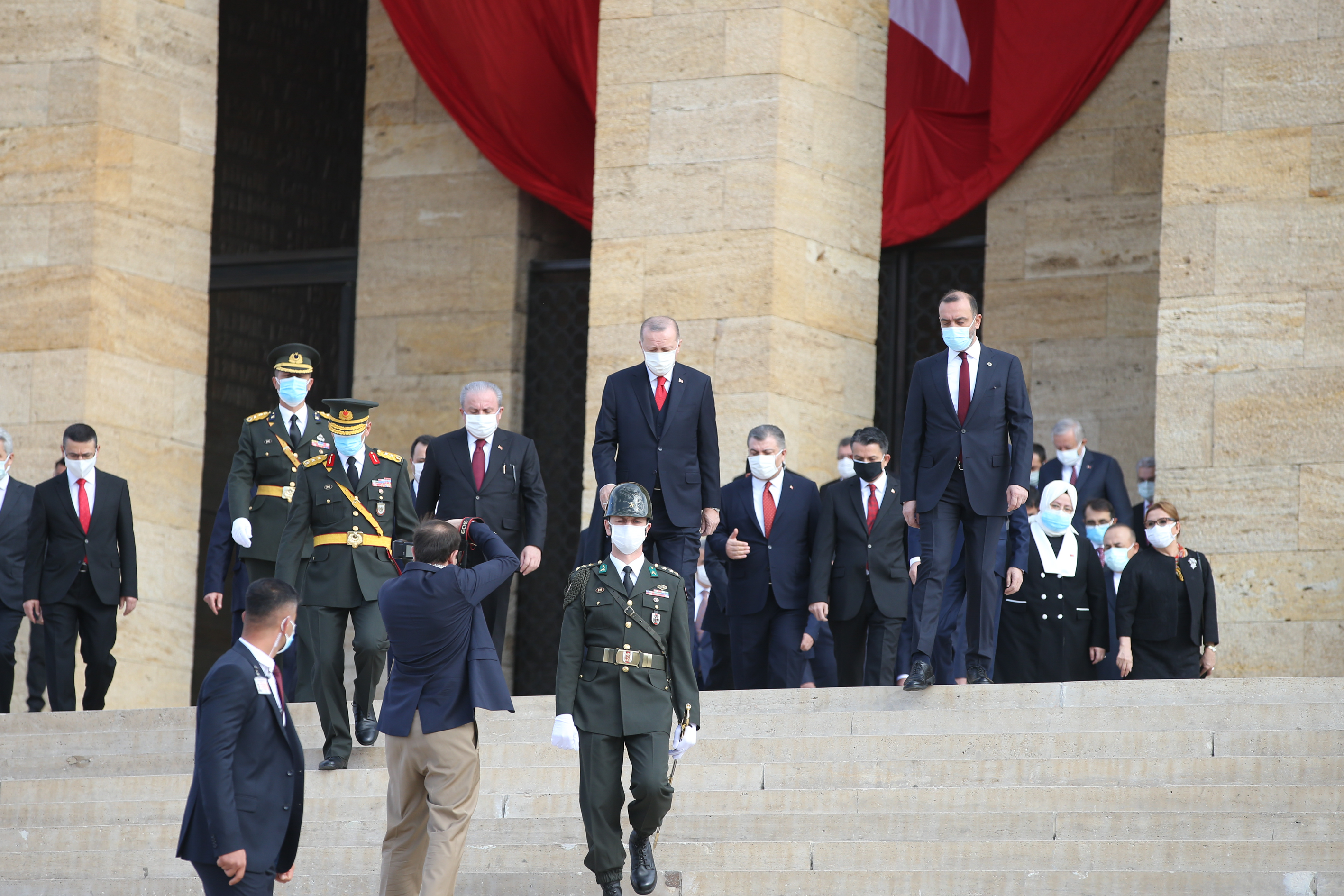 Cumhurbaşkanı Erdoğan başkanlığındaki devlet erkanı, Cumhuriyet'in ilanının 97'nci yıl dönümü dolayısıyla Anıtkabir'i ziyaret etti.