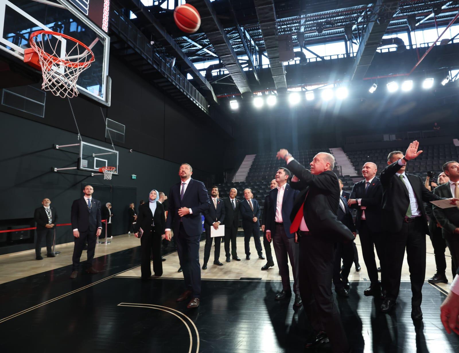Cumhurbaşkanı Erdoğan, Basketbol Gelişim Merkezi'nde potaya atış yaptı