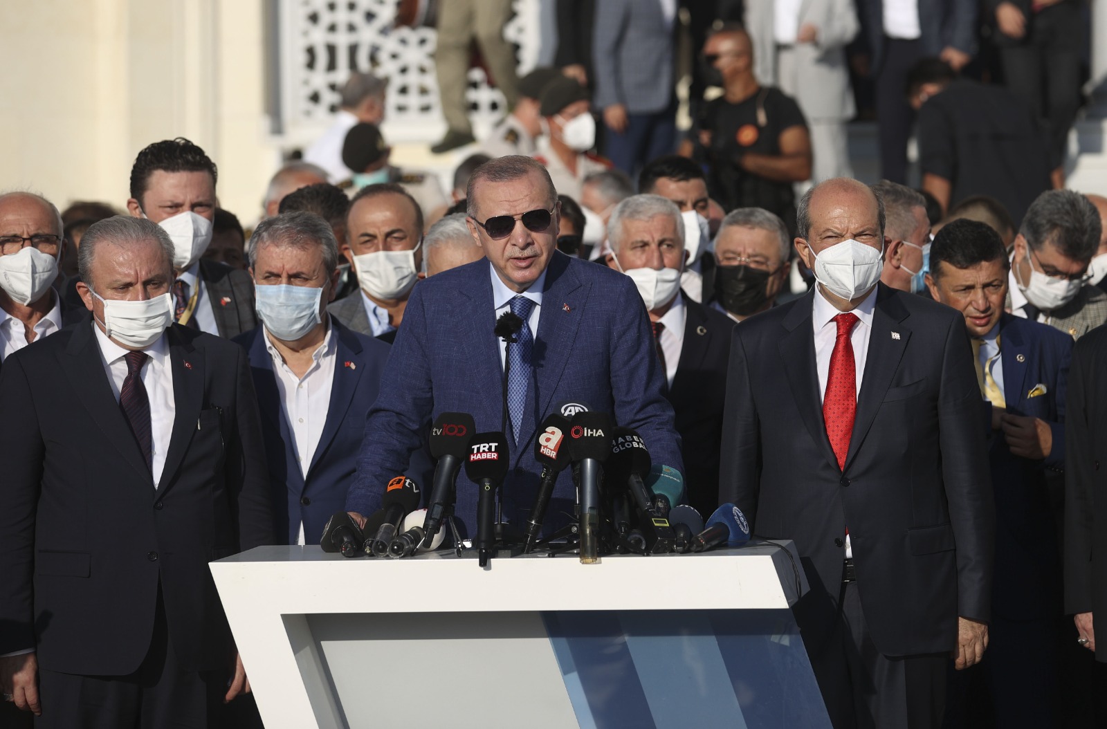 Resmi ziyaret nedeniyle Kuzey Kıbrıs Türk Cumhuriyeti'nde (KKTC) bulunan Cumhurbaşkanı Recep Tayyip Erdoğan, Hala Sultan Camisi'nde kıldığı bayram namazının ardından basın mensuplarının sorularını yanıtladı.