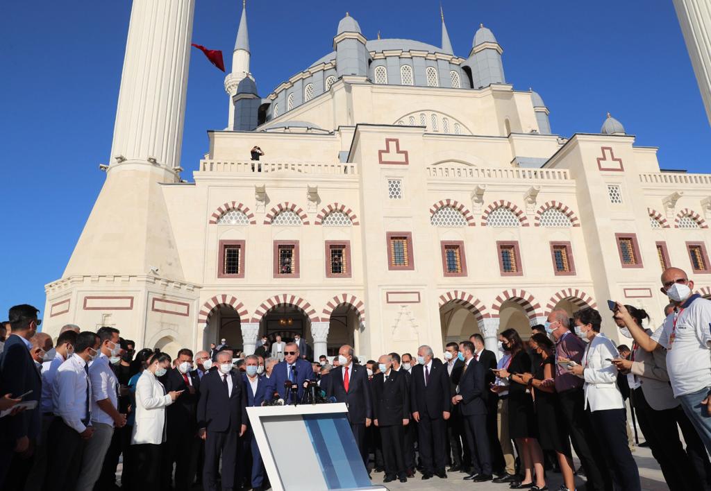 Diyanet İşleri Başkanı Ali Erbaş'ın kıldırdığı bayram namazının ardından cami içinde vatandaşlarla bayramlaşan Cumhurbaşkanı Erdoğan, burada yaptığı konuşmada ise şunları kaydetti: