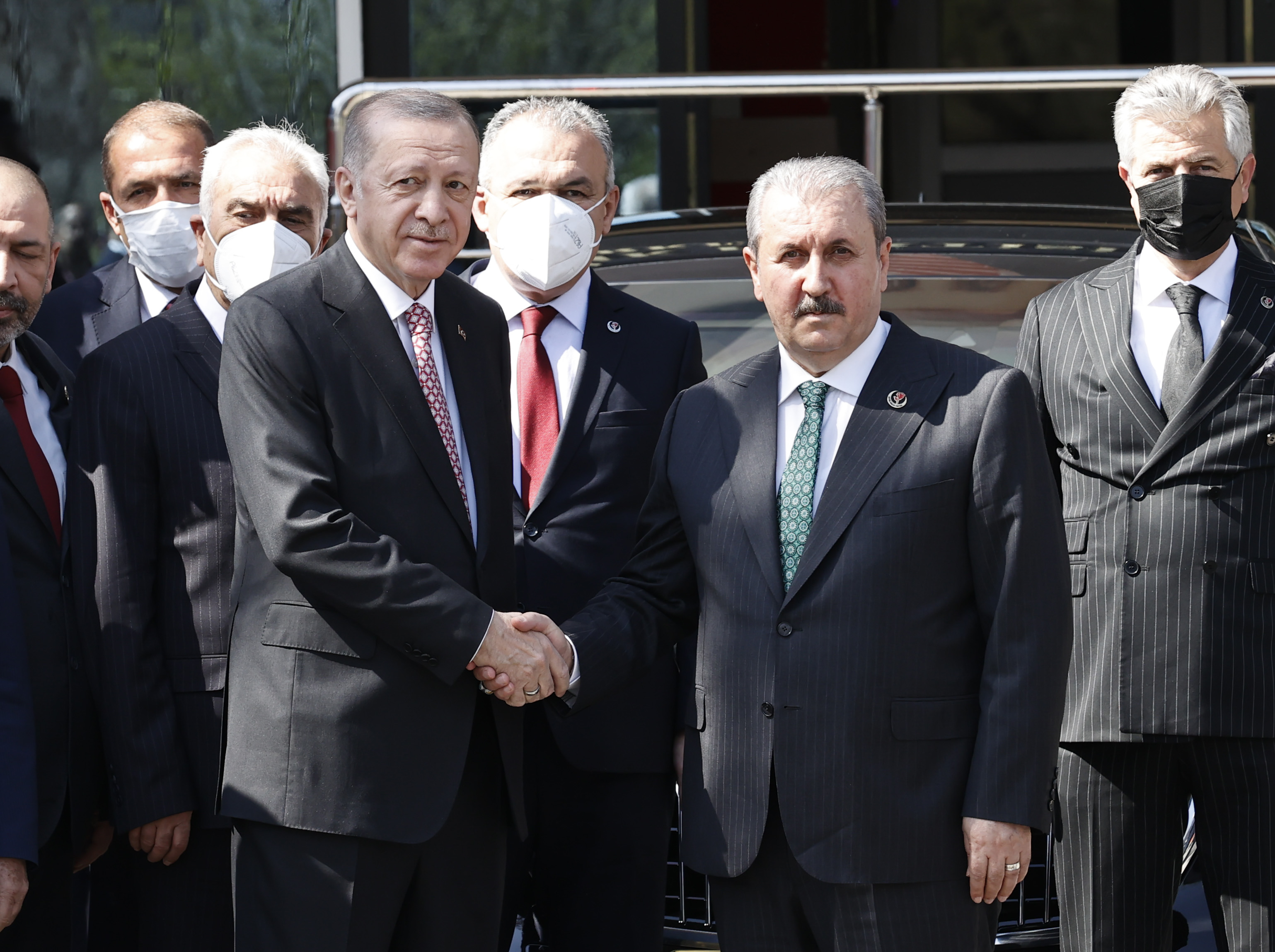 Cumhurbaşkanı Erdoğan, BBP Genel Merkezi'ne gelişinde Destici tarafından karşılandı.