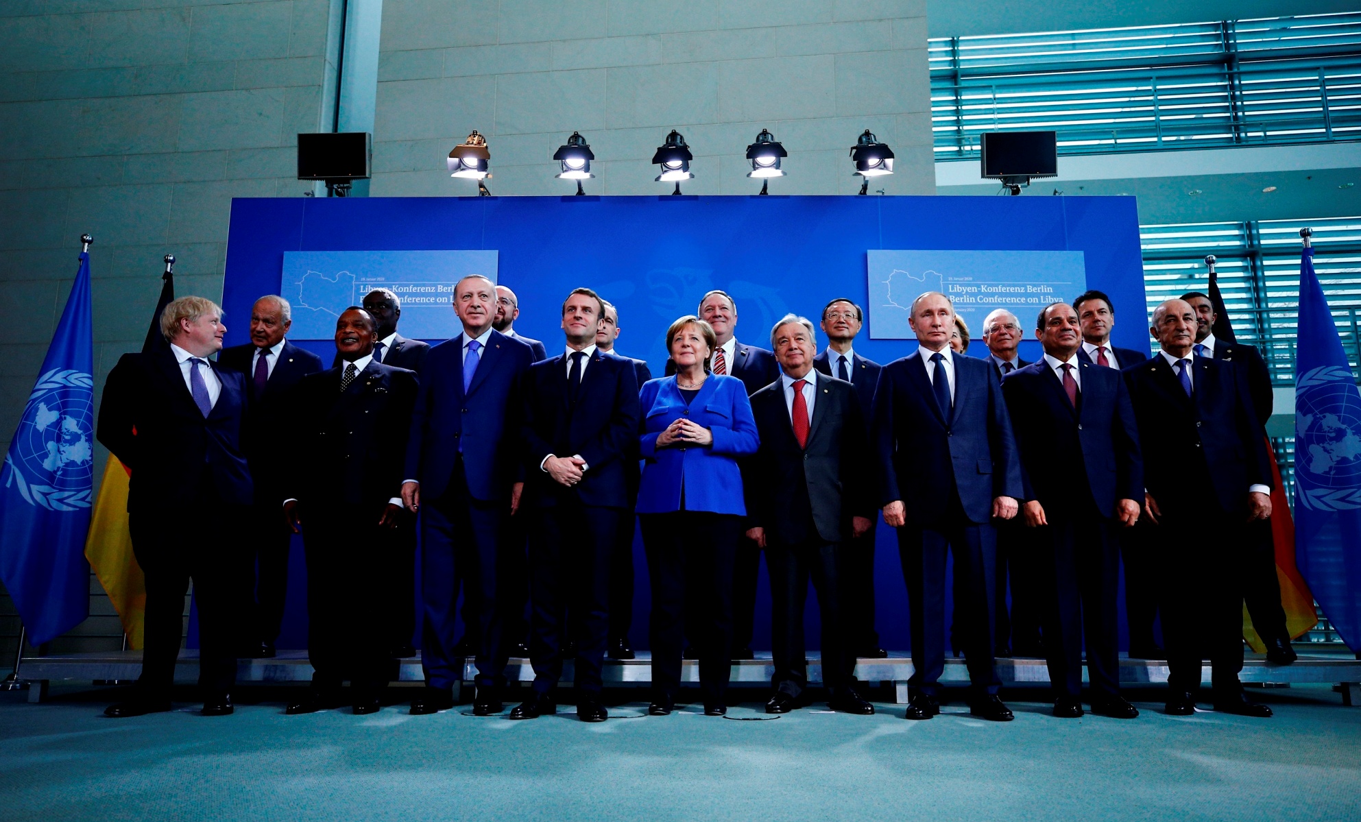 Türkiye ve Rusya'nın devreye girmesi ve akabinde Libya'da sağlanan ateşkesle kesinlik kazanan konferansa, Cumhurbaşkanı Erdoğan, Rusya Devlet Başkanı Vladimir Putin, İngiltere Başbakanı Boris Johnson, Fransa Cumhurbaşkanı Emmanuel Macron, Mısır Cumhurbaşkanı Abdulfettah es-Sisi, AB Komisyonu Başkanı Ursula von der Leyen, İtalya Başbakanı Giuseppe Conte, Kongo Cumhuriyeti Cumhurbaşkanı Felix Tshisekedi, Cezayir Cumhurbaşkanı Abdulmecid Tebbun, BM'nin Libya Temsilcisi Ghassan Salame ile Afrika Birliği ve Arap Ligi temsilcileri katıldı.