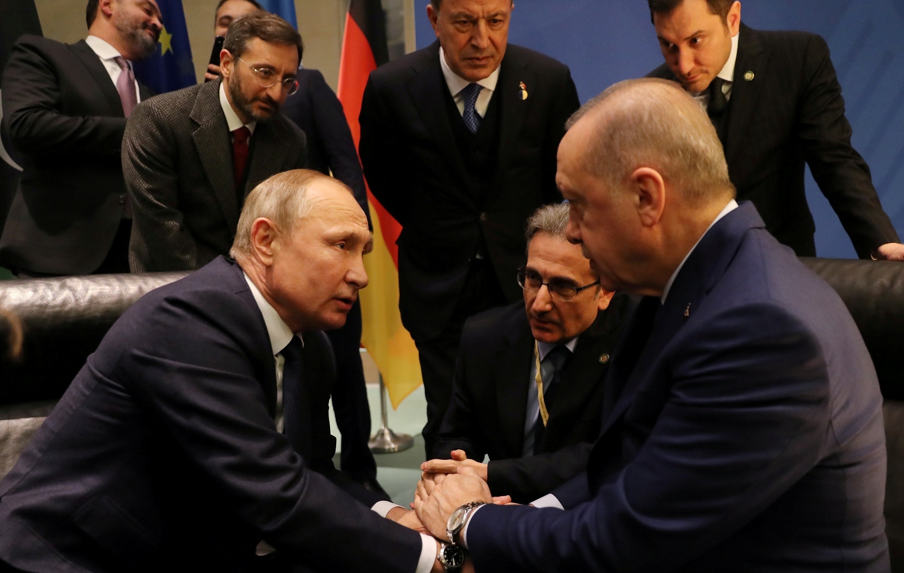 Erdoğan ile, Milli Savunma Bakanı Hulusi Akar, MİT Başkanı Hakan Fidan, İletişim Başkanı Fahrettin Altun ve Cumhurbaşkanlığı Sözcüsü İbrahim Kalın da Berlin'den ayrıldı.