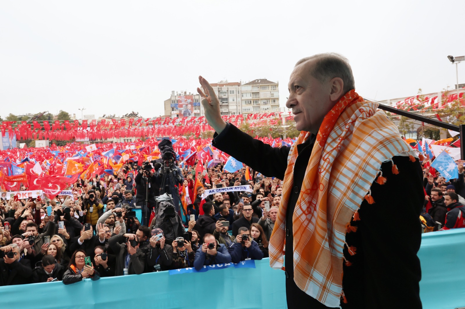 Cumhurbaşkanı Erdoğan, alandakilere seslenerek, "Aydın, bu vesayet heveslisi muhterislere, 14 Mayıs'ta bir kez daha 'yeter' diyor muyuz? Aydın, ülkemize diz çöktürmek için yanıp tutuşan küresel vesayetçilere ve maşalarına 14 Mayıs'ta bir kez daha 'yeter söz milletindir' diyor muyuz? Aydın, 14 Mayıs'ta 'yeter söz de karar da gelecek de milletindir' diyerek, Türkiye Yüzyılı'nı birlikte inşa ediyor muyuz? Aydın, güvenli huzurlu, müreffeh Türkiye'nin yolunu 14 Mayıs'ta sandıkta bir kez daha açıyor muyuz? Aydın, Cumhuriyetimizin yeni asrını bir olarak, iri olarak, diri olarak, kardeş olarak, hep birlikte Türkiye olarak kucaklıyor muyuz? Aydın, bir türlü yerli ve millî olamayan Zat'a 14 Mayıs'ta 'Bay bay Kemal' diyor muyuz? Aydın'dan yükselen bu sesi duyup da yüreği titremeyen var mıdır? Rabbim hepinizden razı olsun." diye konuştu.