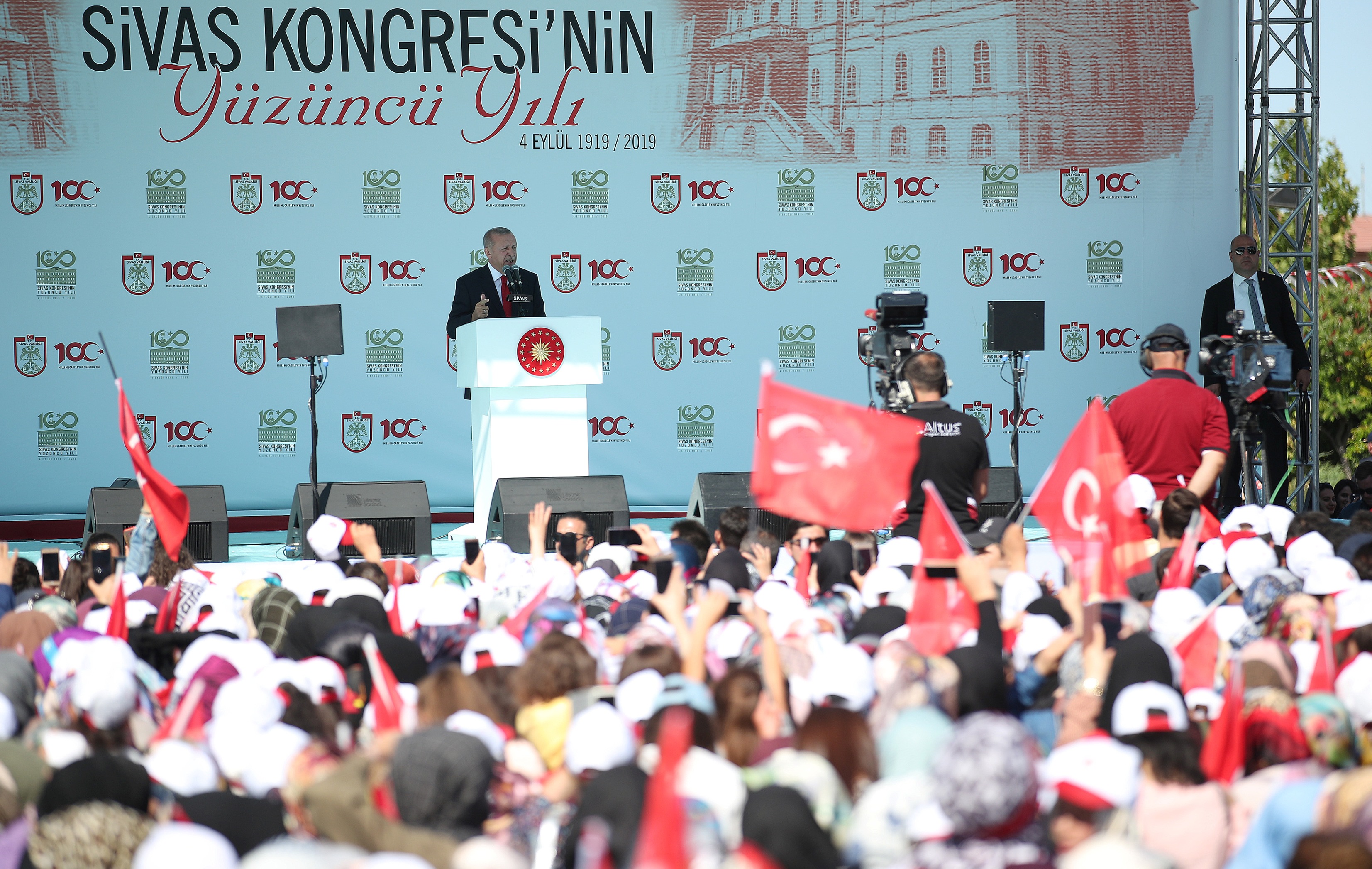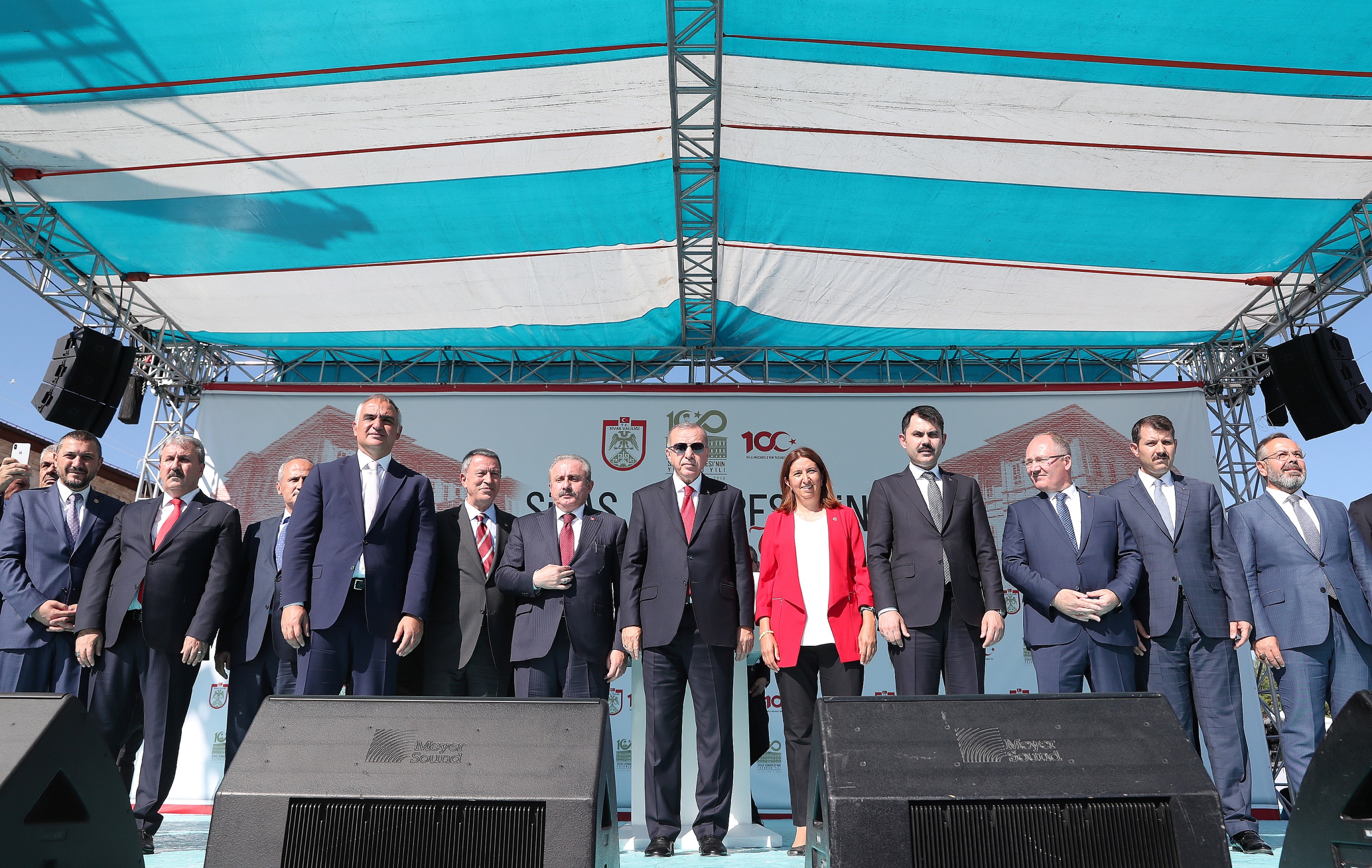 Türkiye'nin önünü kesmek isteyenlere fırsat vermediniz. Bu birlik ve beraberliğimiz devam ettiği sürece hürriyetimize değerlerimize ve kardeşliğimize yönelebilecek her türlü tehdit bertaraf olacaktır. Sivas Kongresi'nin 100'üncü yıl dönümünde Sivas Mektebi Sultani binasından bir kez daha haykırıyoruz, milli sınırlar içinde vatan bir bütündür. Vatanımız, bayrağımız, devletimiz, milletimiz, istiklalimiz, bizim namusumuzdur, şerefimizdir. Vatanımıza, bayrağımıza, istiklalimize uzanan her eli kırdık, yine kıracağız."