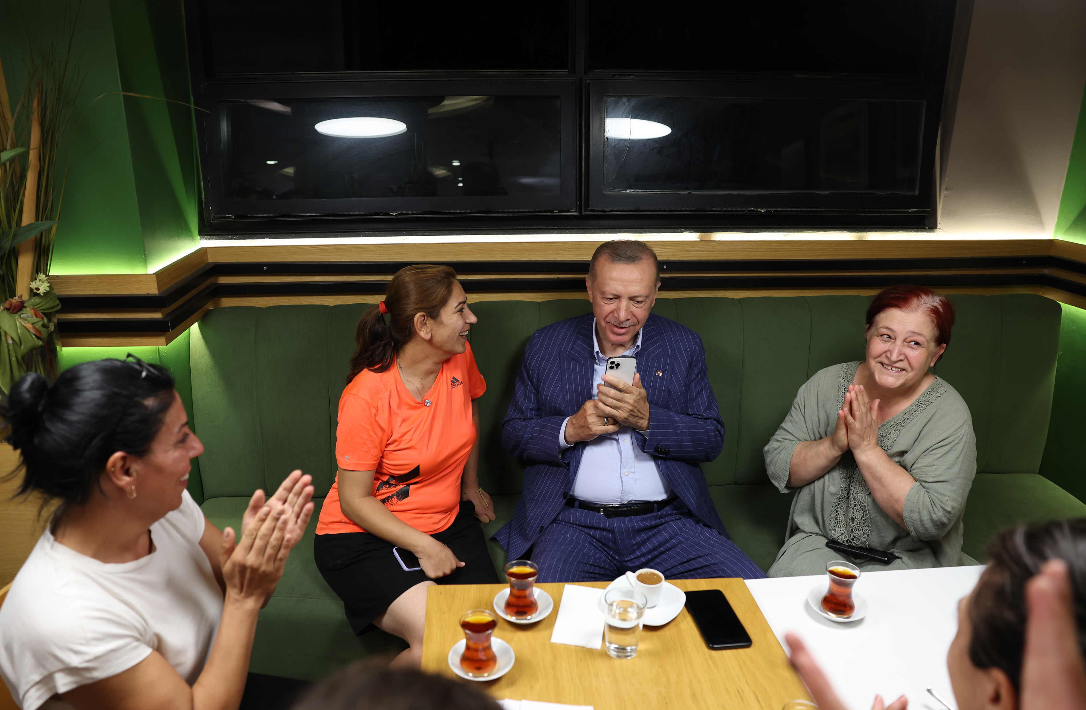 Burada bir süre oturan, çay ve kahve ikramı eşliğinde esnaf ve vatandaşlarla sohbet eden Cumhurbaşkanı Erdoğan, bir vatandaşın yakınıyla telefonda konuştu.