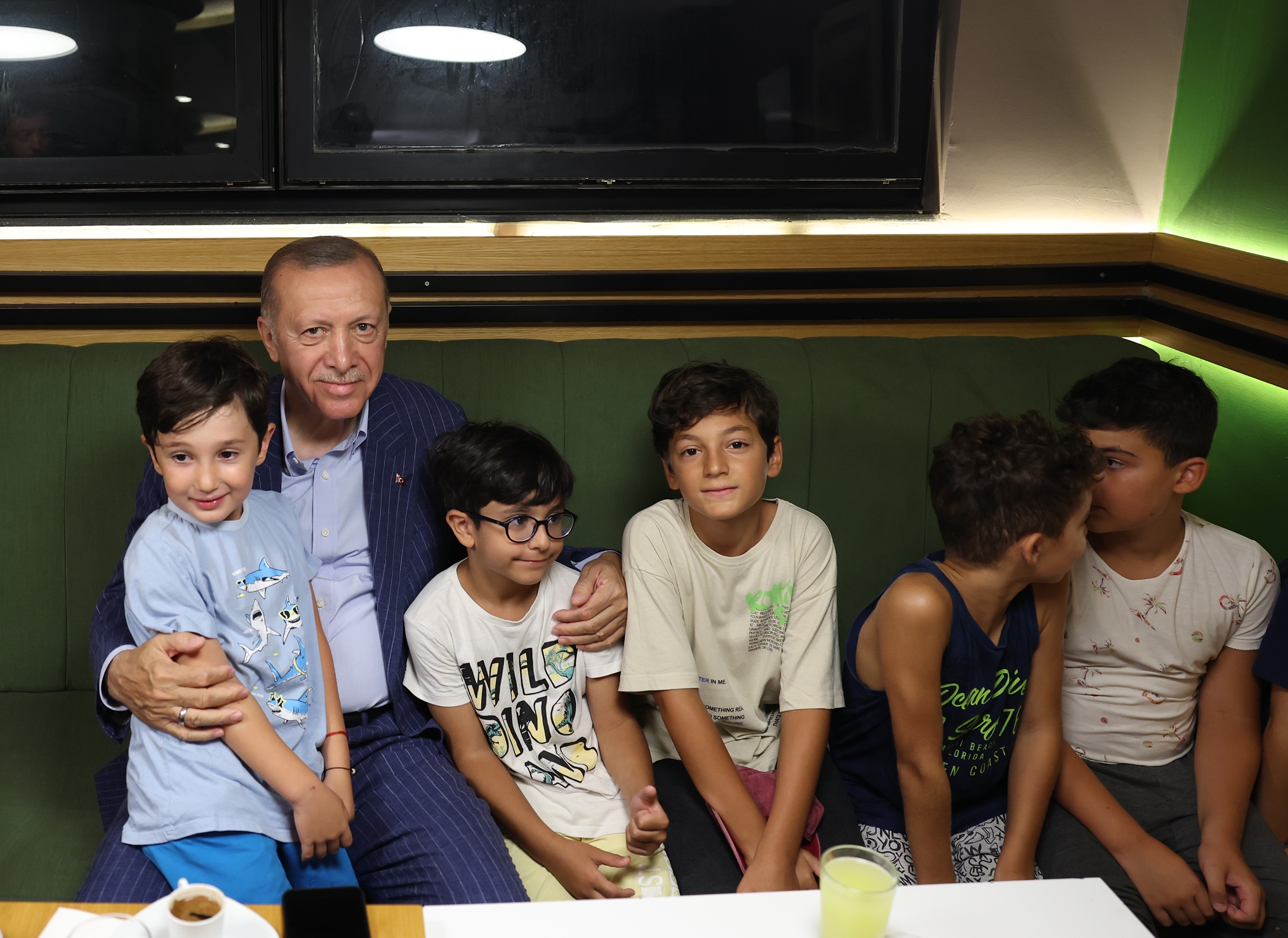 Yakından ilgilendiği çocuklara oyuncak dağıtan Cumhurbaşkanı Erdoğan, daha sonra pastaneden ayrıldı.