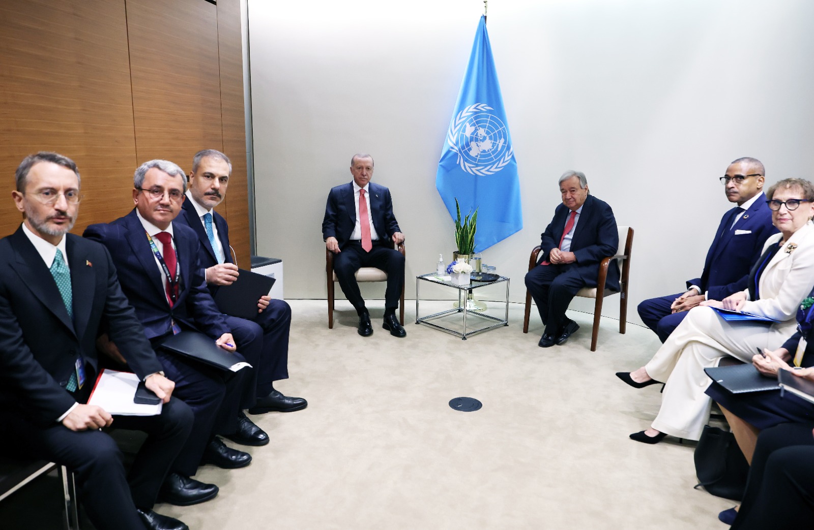 Cumhurbaşkanı Recep Tayyip Erdoğan, Birleşmiş Milletler 79. Genel Kurulu için gittiği New York’taki Birleşmiş Milletler binasında BM Genel Sekreteri Antonio Guterres’i kabul etti.