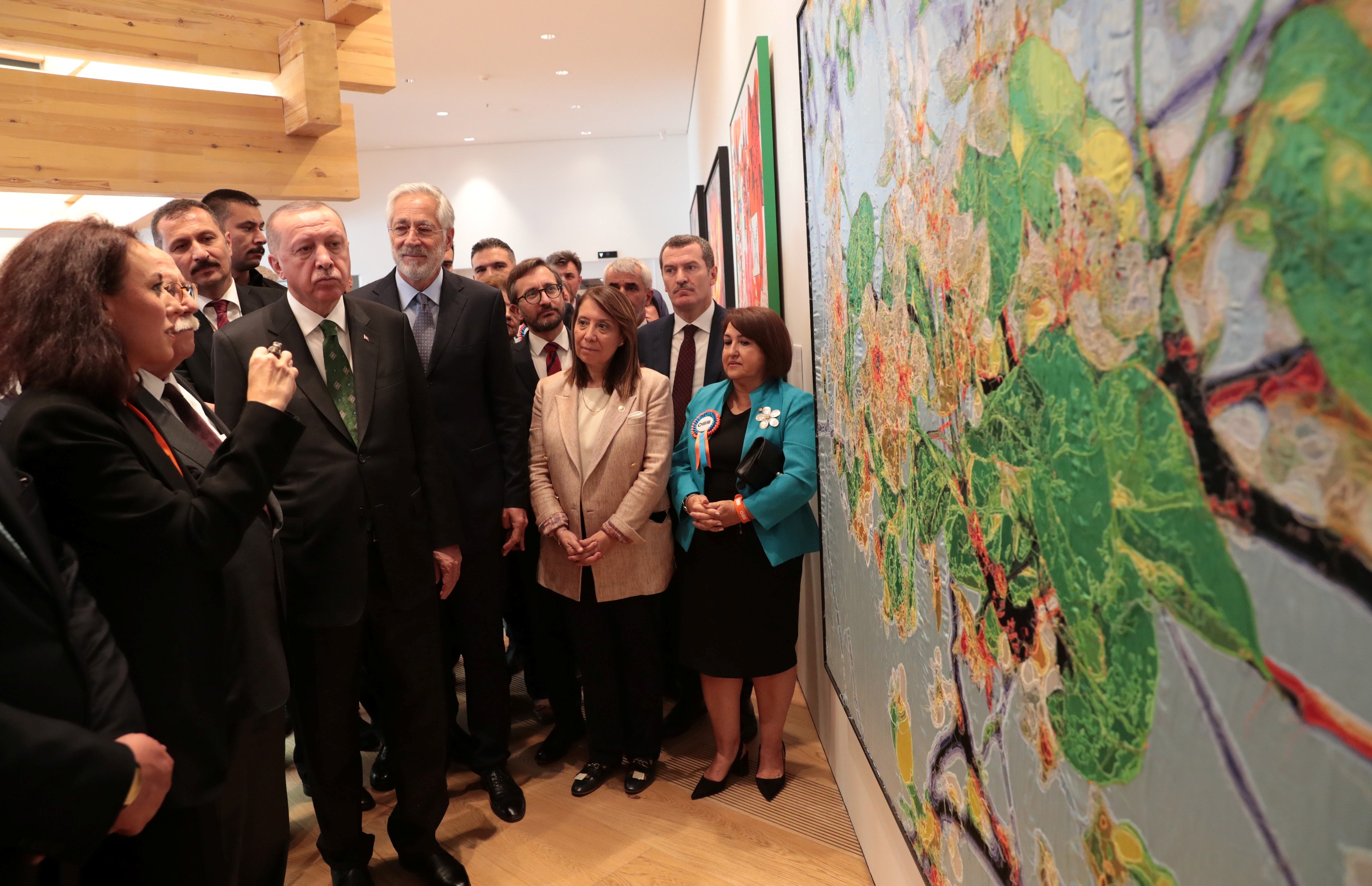 Erdoğan, kültür ve sanat alanında Türkiye'nin hak ettiği yere gelmesini sağlamanın mücadelesi içerisinde olduklarını belirterek, "Cumhurbaşkanlığı Külliyesi içinde ülkemizin en büyük kütüphanesini inşa ettik. İnşallah 29 Ekim Cumhuriyet Bayramı'nda şu anda kitap yerleştirme işlemleri süren bu kütüphaneyi, resmen hizmete açmayı planlıyoruz." diye konuştu.