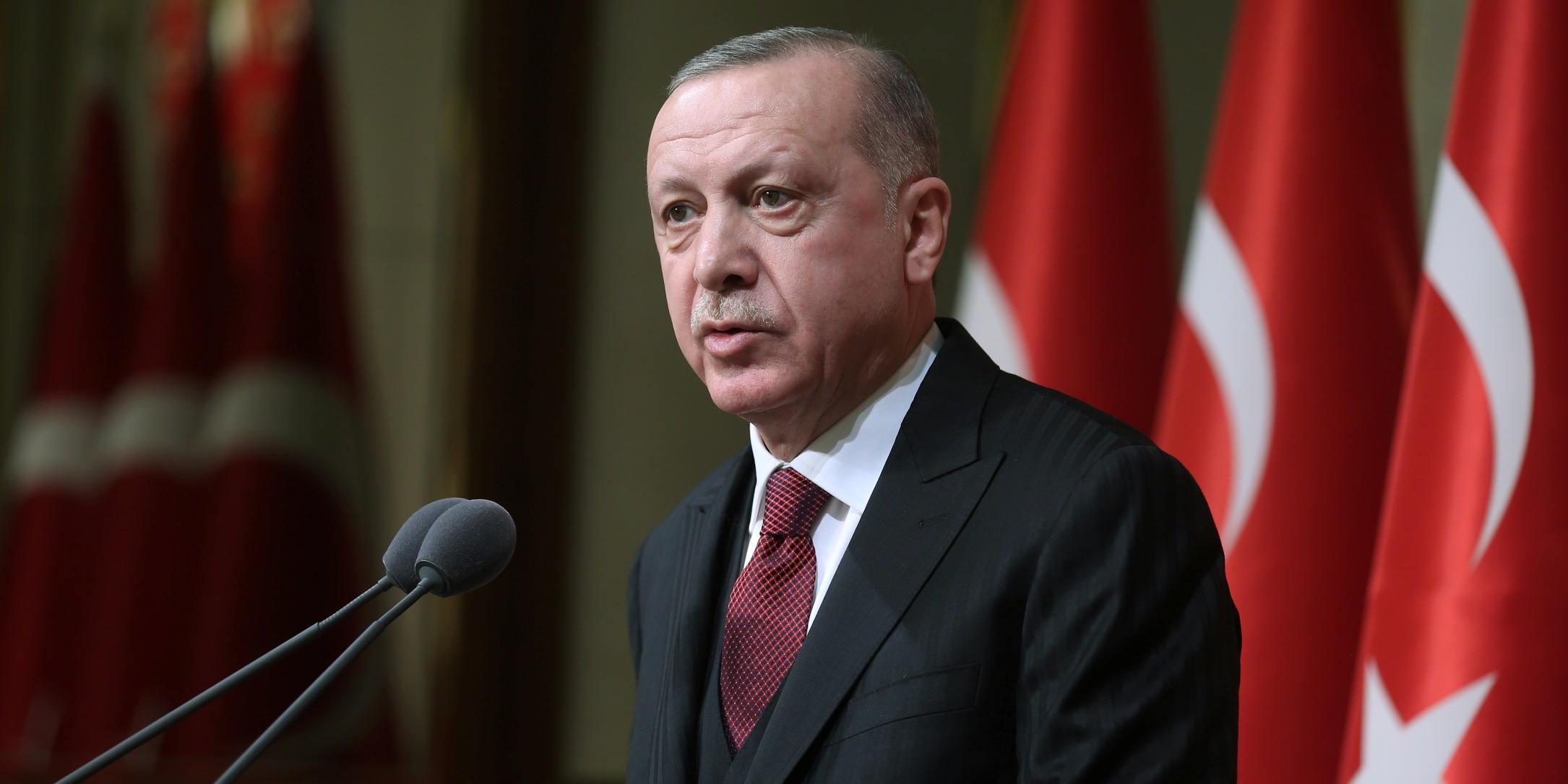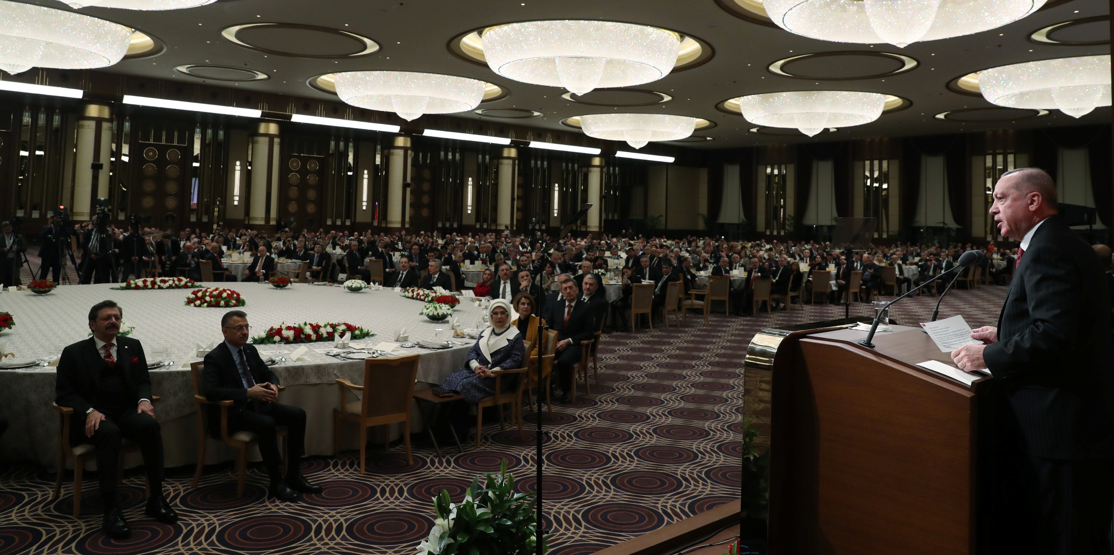 Konuşmasına tüm katılımcıları selamlayarak başlayan Erdoğan, Suriye'de ve Libya'da Türkiye'nin ve Türk Milleti'nin bekası için mücadele ederken şehit düşen tüm kahramanlara Allah'tan rahmet, gazilere sıhhat ve afiyet temenni etti.