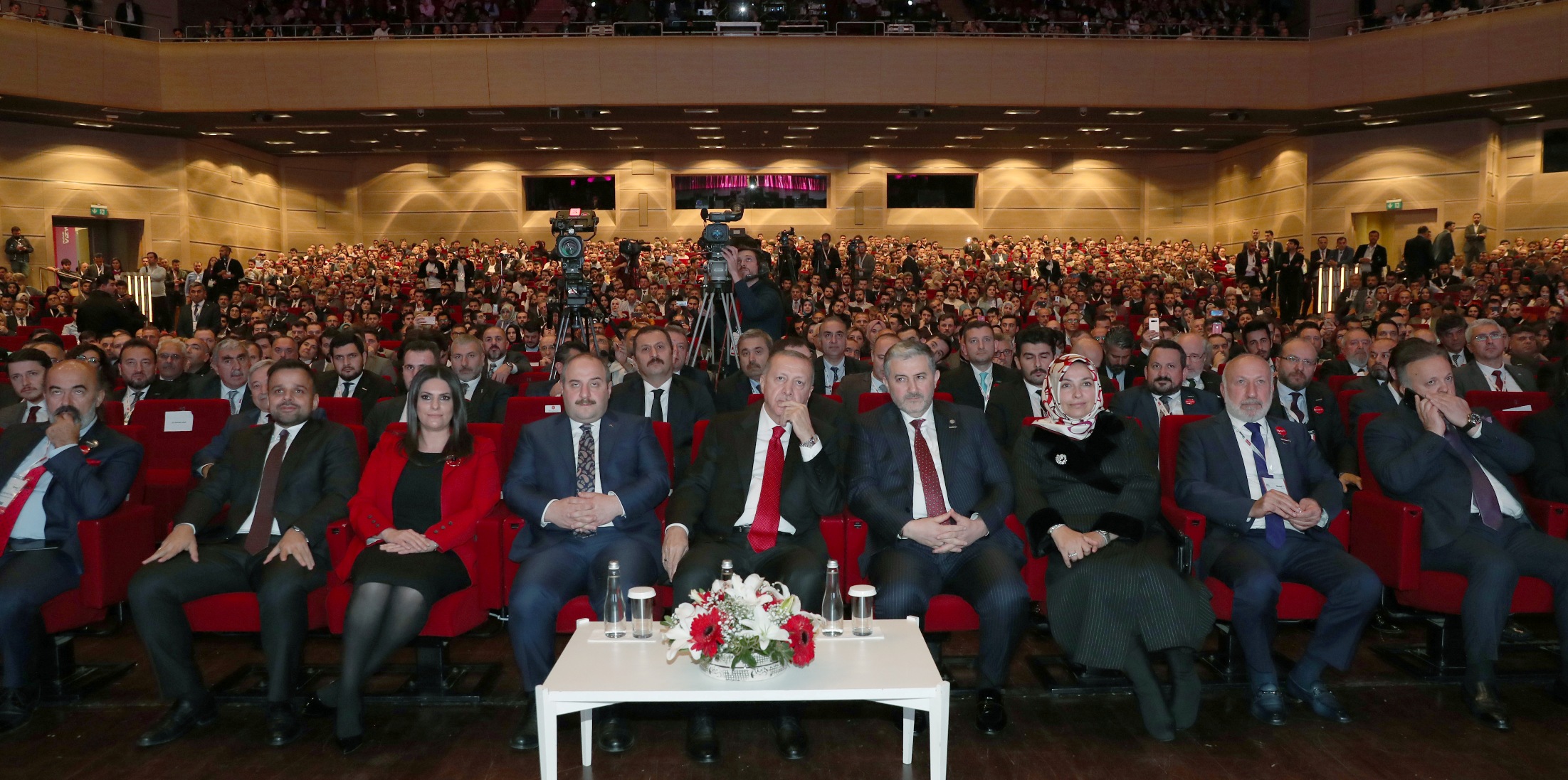 Türkiye'yi ısrarla başka bir fotoğrafın içine yerleştirmek isteyenlere cevabı burada olduğu gibi güçlü vizyonlarıyla vereceklerini belirten Erdoğan, morallerini bozmak isteyenlerin heveslerini her alandaki başarılarıyla kıracaklarını söyledi.