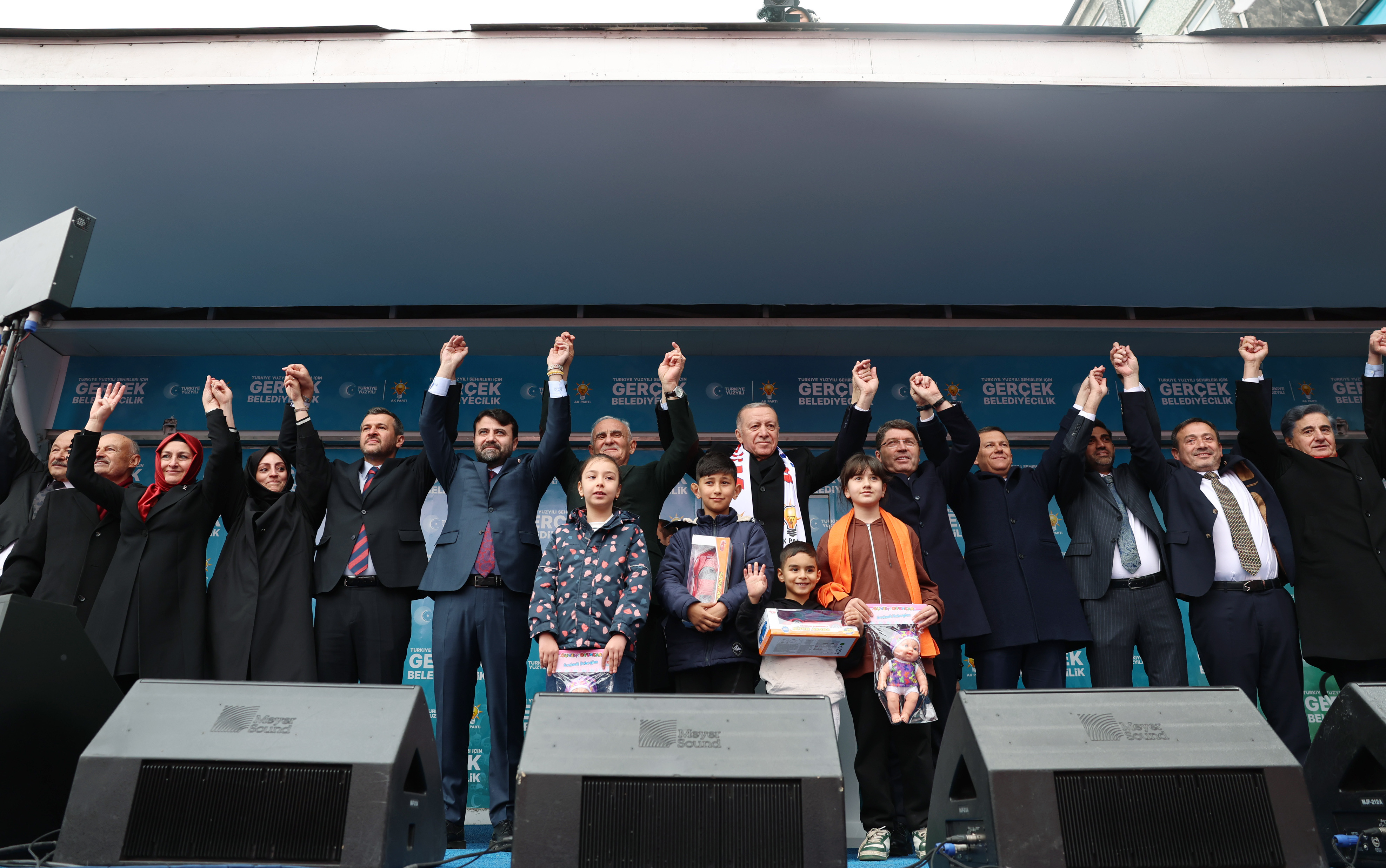 Alana kurulan ekrandan yatırımların izletilmesinin ardından Cumhurbaşkanı Erdoğan, bu millete efendi olmaya değil hizmetkâr olmaya geldiklerini söyledi. Erdoğan, "İnşallah 31 Mart'tan sonra bunlara, yerel yönetimlerle işbirliği halinde çok daha fazlasını Cumhurbaşkanı kardeşiniz, ekibiyle ilave edecektir. İl ve ilçe belediye başkan adaylarımızı ben sizlere emanet ediyorum. 31 Mart'a kadar gece gündüz çalışıyoruz değil mi?" ifadelerini kullandı.