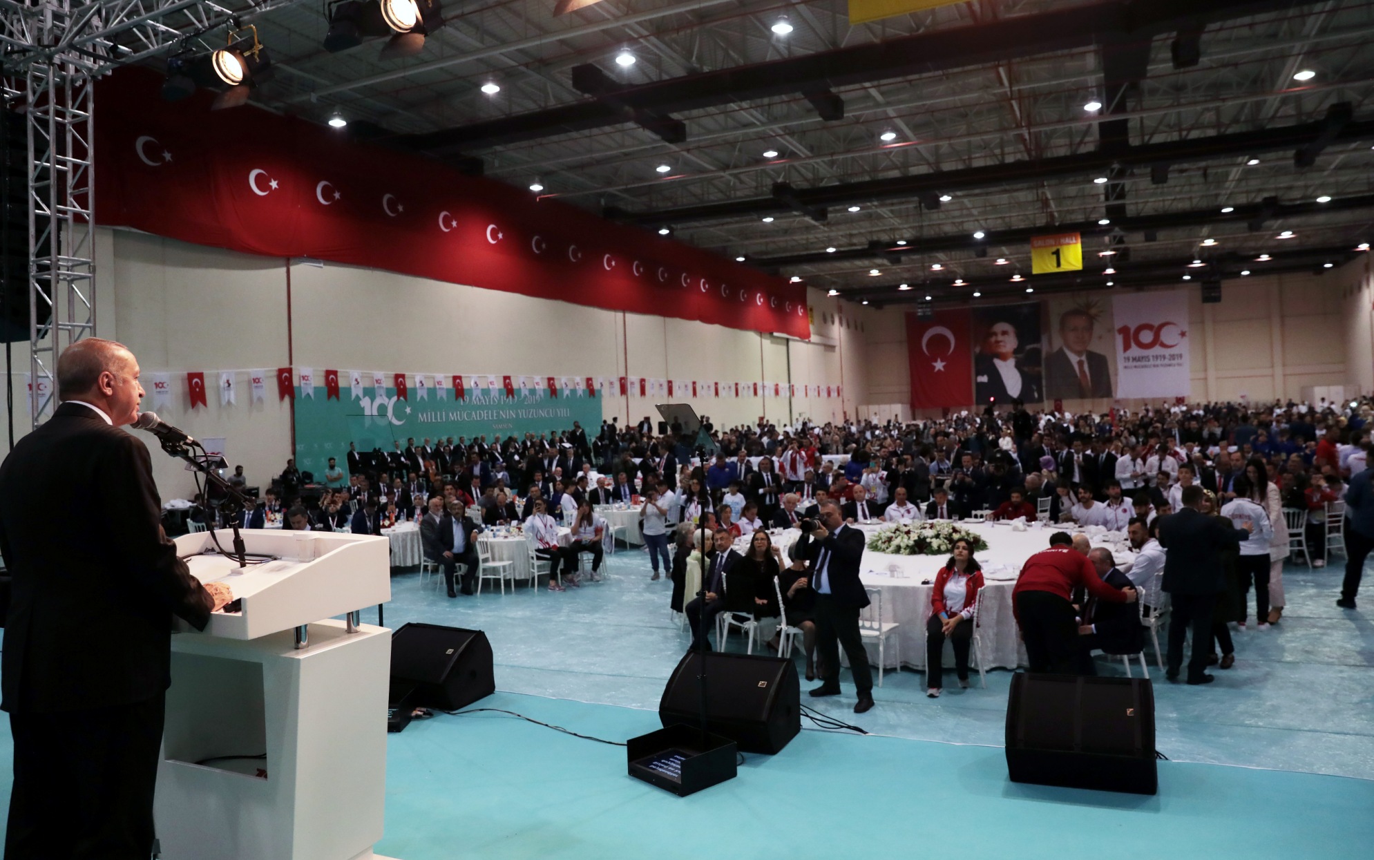 Cumhurbaşkanı Recep Tayyip Erdoğan, 19 Mayıs Atatürk'ü Anma, Gençlik ve Spor Bayramı 100. Yıl Törenleri kapsamında Samsun TÜYAP Fuar Merkezi'nde gençler ve sporcularla iftarda bir araya geldi.