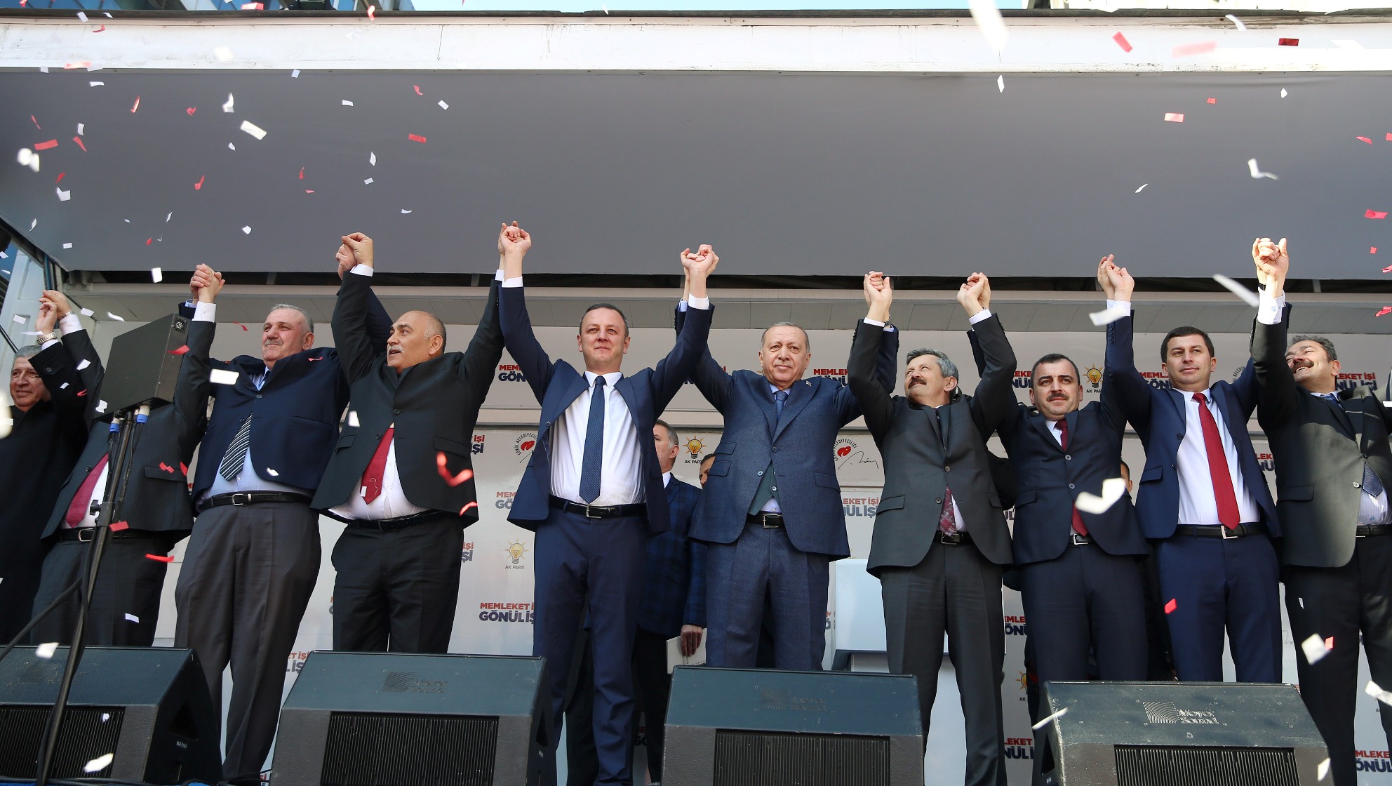 Sınırlarımıza teröristlerle, ekonomimize kur, faizle, soframıza vurguncularla, birliğimize bölücülerle, beraberliğimize fitneyle saldıranlar şu anda pusuda bekliyor. Bugüne kadar içeride ve dışarıda ne yaptılarsa bu milletin çelik gibi iradesi karşında çaresiz kalanlar 31 Mart için tarihlerinin en büyük ittifakını oluşturdular. Yolda bir birlerini görseler selam vermeyecek bunca benzemezi bir araya getiren nedir biliyor musunuz? Bunları geçmişlerini inkâr etme pahasına bir araya getiren bir şey olmalı. Zahirde Cumhur İttifakı'na ve şahsıma karşısı bir araya gelmiş görünüyorlar ama aslında bunları bir araya getiren, Türkiye'nin 2023 hedeflerine ulaştığında sahip olacağı güçten korkuyorlar." ifadelerini kullandı.