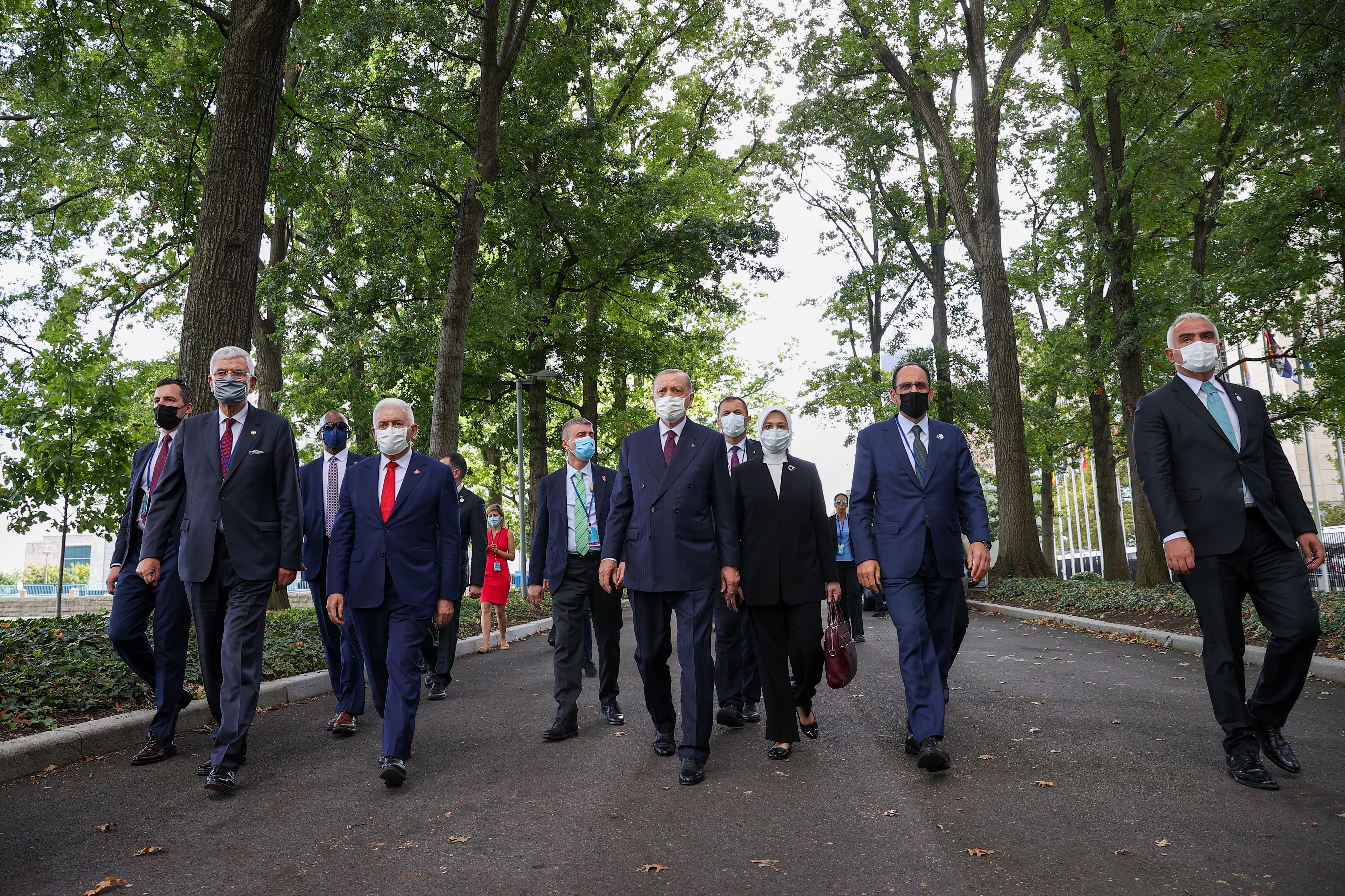 Cumhurbaşkanı Erdoğan'a ziyareti sırasında Kültür ve Turizm Bakanı Mehmet Nuri Ersoy, AK Parti Genel Başkanvekili Binali Yıldırım, BM 75. Genel Kurul Başkanı Volkan Bozkır, Cumhurbaşkanlığı Sözcüsü İbrahim Kalın ve Türkiye'nin BM Daimi Temsilcisi Feridun Sinirlioğlu eşlik etti.