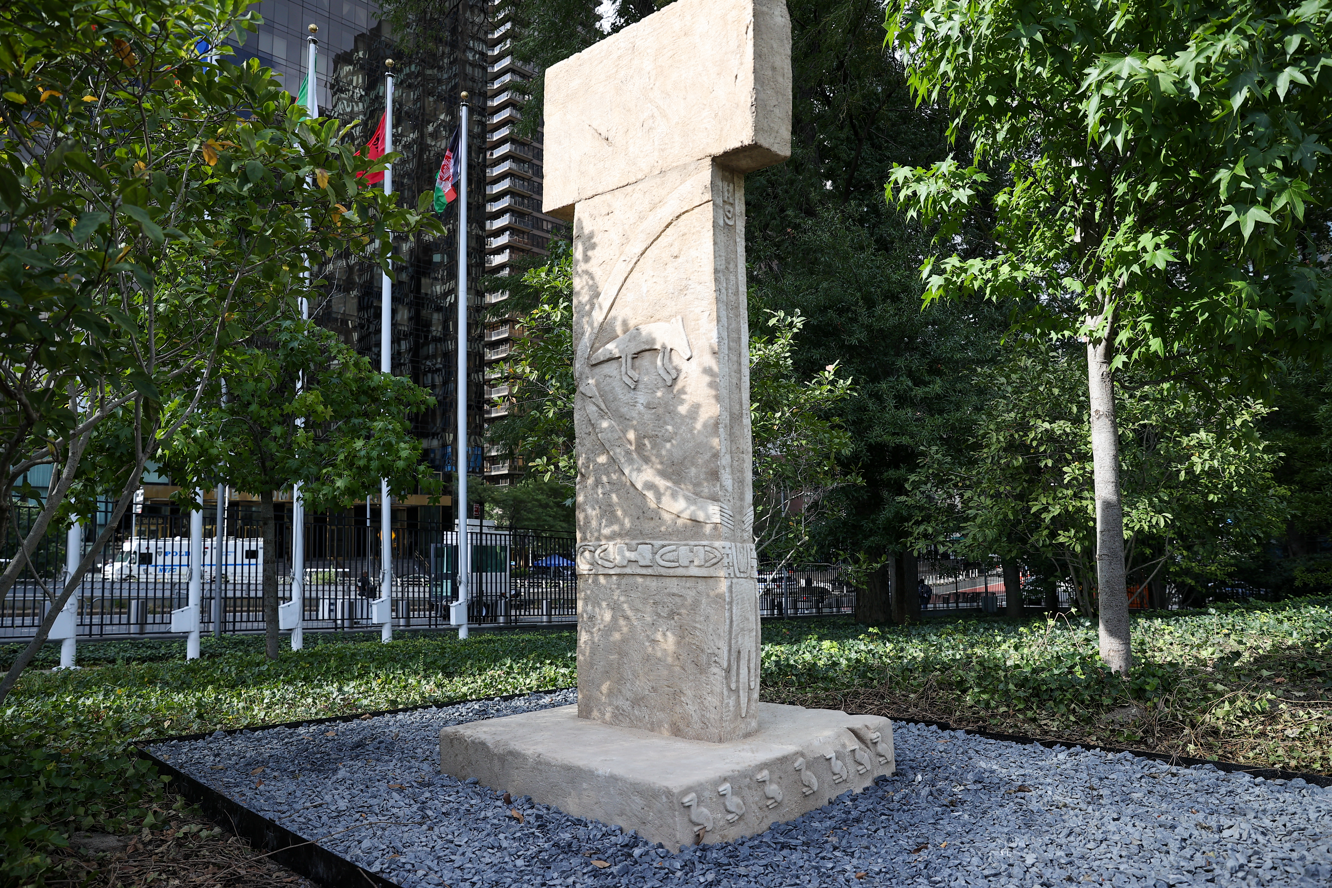 Dikilitaş replikası, BM yerleşkesinde sergilenen ikinci "antik dönem Anadolu" eseri oldu.
