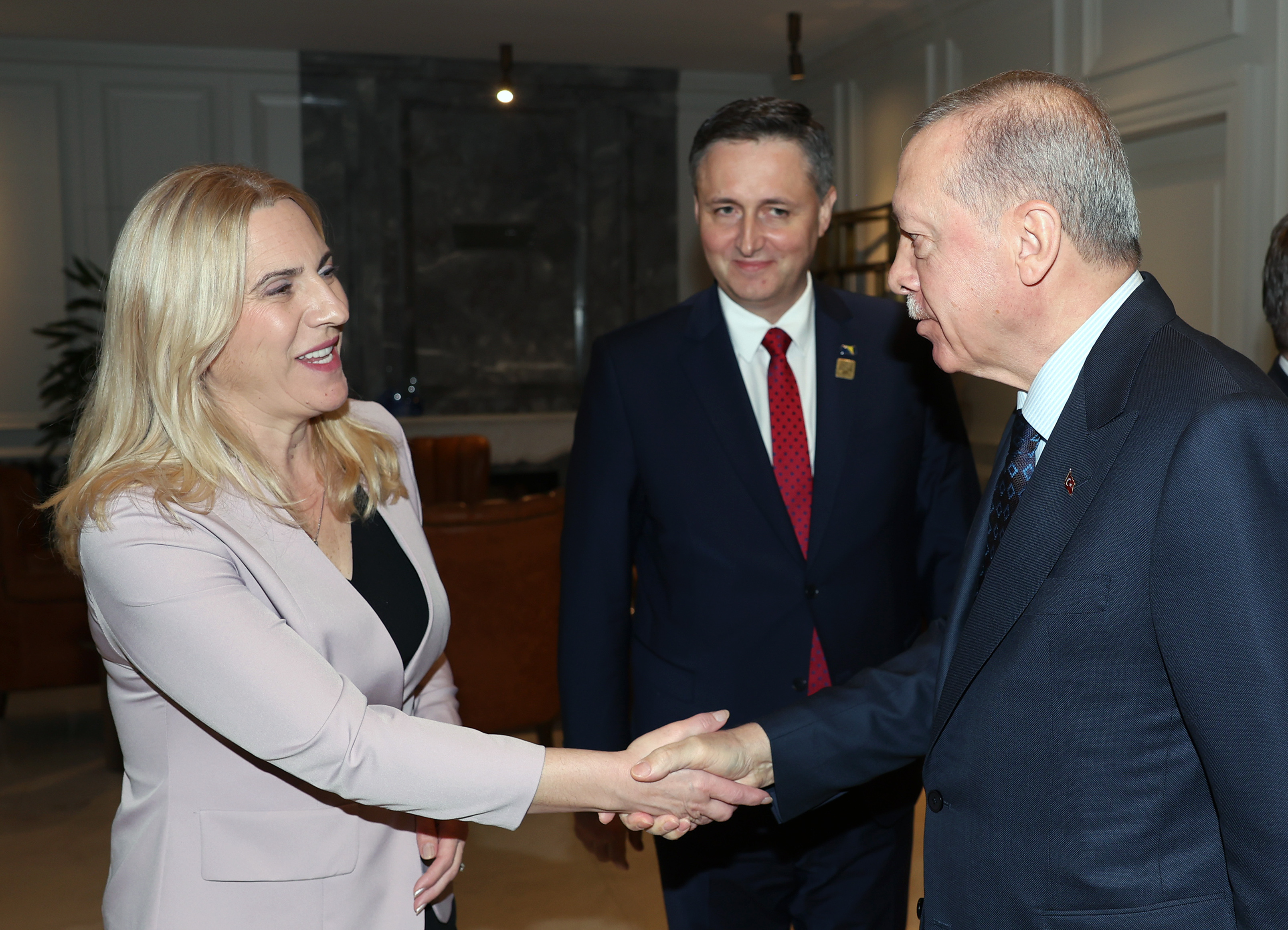Cumhurbaşkanı Recep Tayyip Erdoğan, Antalya Diplomasi Forumu için Türkiye'de bulunan Bosna Hersek Devlet Başkanlığı Konseyi üyeleri Denis Becirovic, Zeljko Komsic ve Zeljka Cvijanovic ile bir araya geldi.