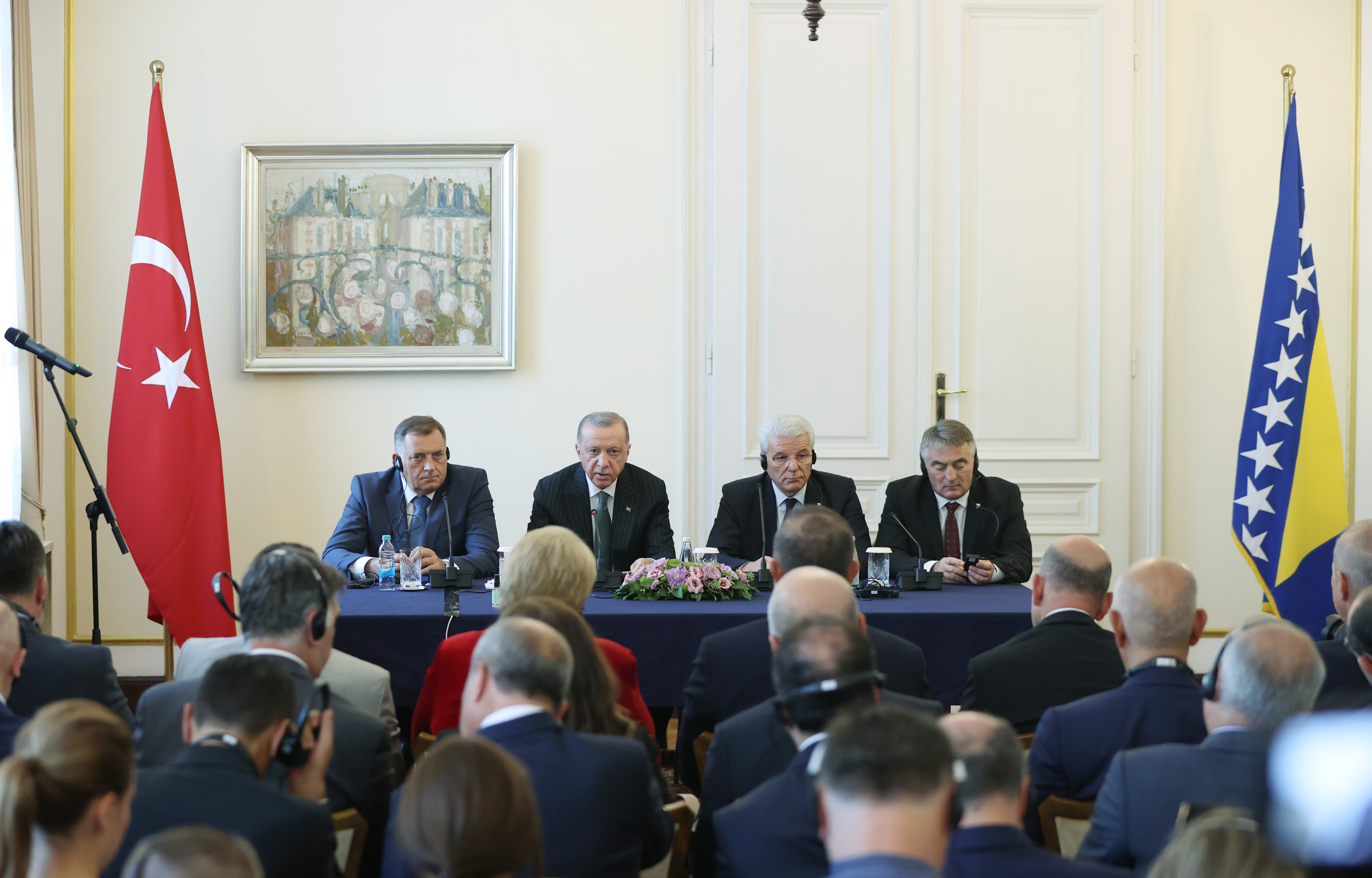 Cumhurbaşkanı Recep Tayyip Erdoğan, ziyarette bulunduğu Bosna Hersek'te baş başa ve heyetler arası gerçekleştirilen görüşmelerin ardından Bosna Hersek Devlet Başkanlığı Konseyi Başkanı Şefik Caferoviç ve konsey üyeleri ile düzenlenen ortak basın toplantısında yaptığı konuşmada, Balkan turunun ilk durağı olan Bosna Hersek'in güzel başkenti Saraybosna'da bulunmaktan büyük bir bahtiyarlık duyduğunu söyledi.