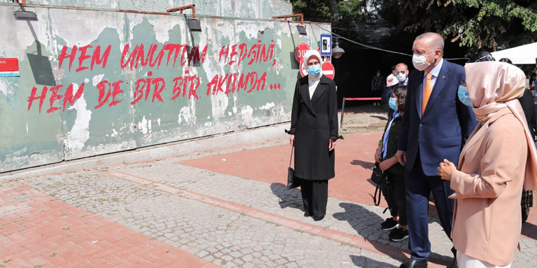 Cumhurbaşkanı Erdoğan, Kadın ve Demokrasi Derneği (KADEM) tarafından Topkapı Sarayı Darphane-i Amire Binası'nda düzenlenen sergiye ilişkin yaptığı paylaşımda, "28 Şubat'ta yaşanan mağduriyetlere ve kadınlarımızın hafızasında bıraktığı derin izlere sanatın güçlü diliyle dikkat çeken 'Böyle Daha Güzelsin' sergisini torunum Mahinur ile birlikte ziyaret ettik. KADEM'e ve tüm eser sahiplerine şükranlarımı sunuyorum." ifadelerine yer verdi.
