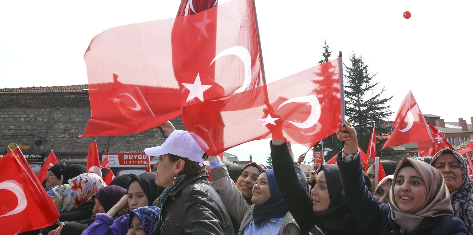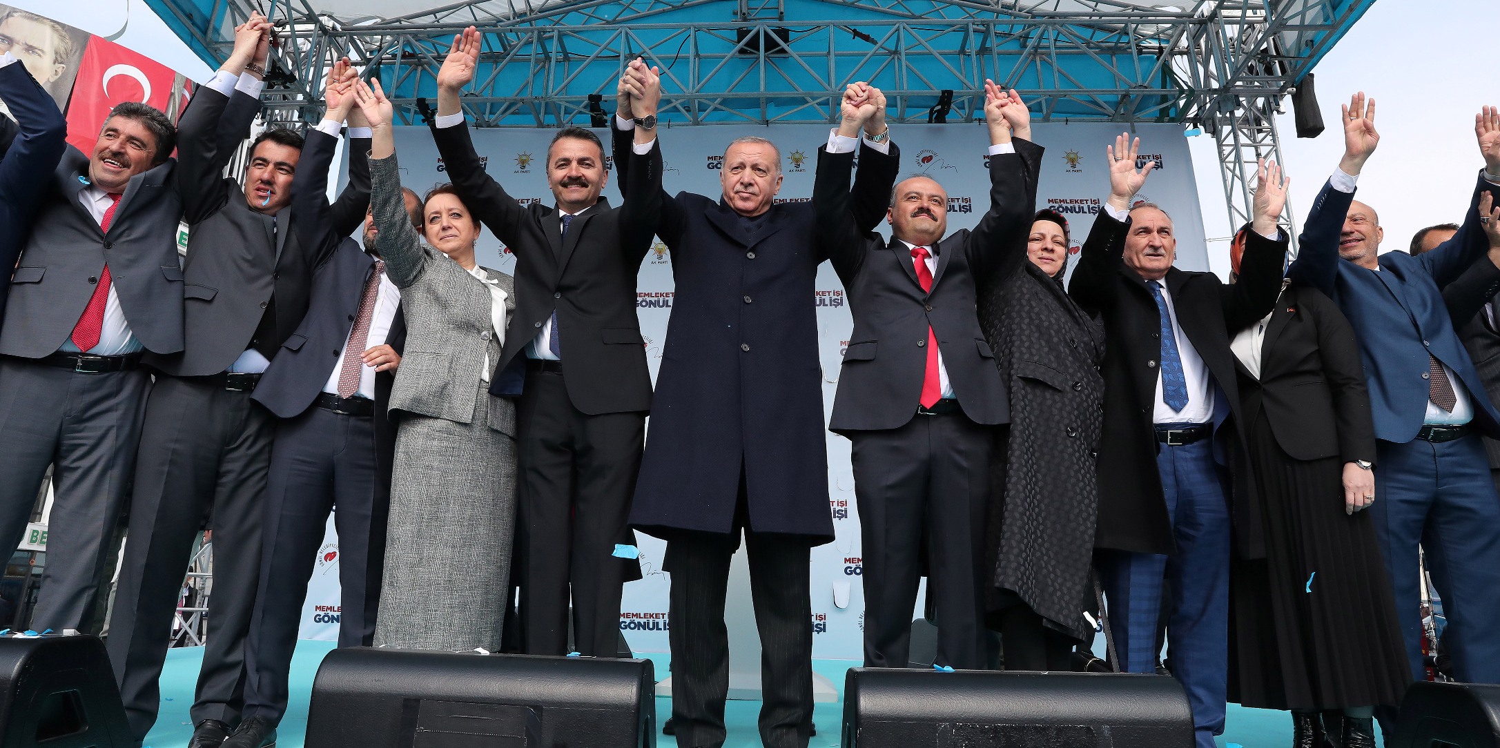 "16 bin 500 kilometre öteden silahlarına kazıdıkları yazılarla bizi tehdit edenlere bu meydanları bırakmayacağız. Binlerce tır silahla desteklenen Suriye'nin kuzeyindeki canilerin Türkiye'ye musallat edilmesine, ülkemizin bir terör koridoruyla kuşatılmasına asla izin vermeyeceğiz. Tüm bu badireleri atlatmamız için güçlü olmak zorundayız. Milletimizin tökezlemesini bekleyenlere fırsat vermemek için hep birlikte sağlam durmak mecburiyetindeyiz. İşte bunun için sizlerden 31 Mart'ta bir kez daha rekor destek bekliyoruz. Sizlerden milletimize kurulan tuzakları darmadağın etmenizi istiyoruz. Türk milletine had bildirmeye yeltenenlere oylarınızla hadlerini bildirmenizi istiyoruz."