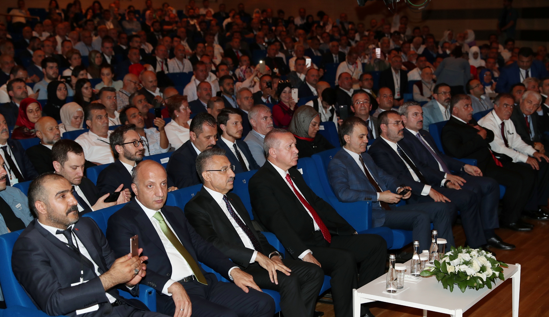 Haliç'in kokudan geçilmediğini, şu anda temizlendiğini ve burada balık tutulduğunu aktaran Erdoğan, "Şu anda toplantı yaptığımız yer, burası neydi? Meşhur Sütlüce. Mezbahaneydi burası. Hemen arka tarafımızda sakatatçılar var. Buradan geçilemiyordu. Ben buraların çocuğuyum, burada doğdum, büyüdüm. Belediye başkanlığım döneminde temelini attık ve burayı bir kongre merkezi haline getirdim. Şimdi şu güzelliğe bak. O günden bu güne burada uluslararası, ulusal kongreler yapılıyor. Bunları böyle kazandık." ifadelerini kullandı.