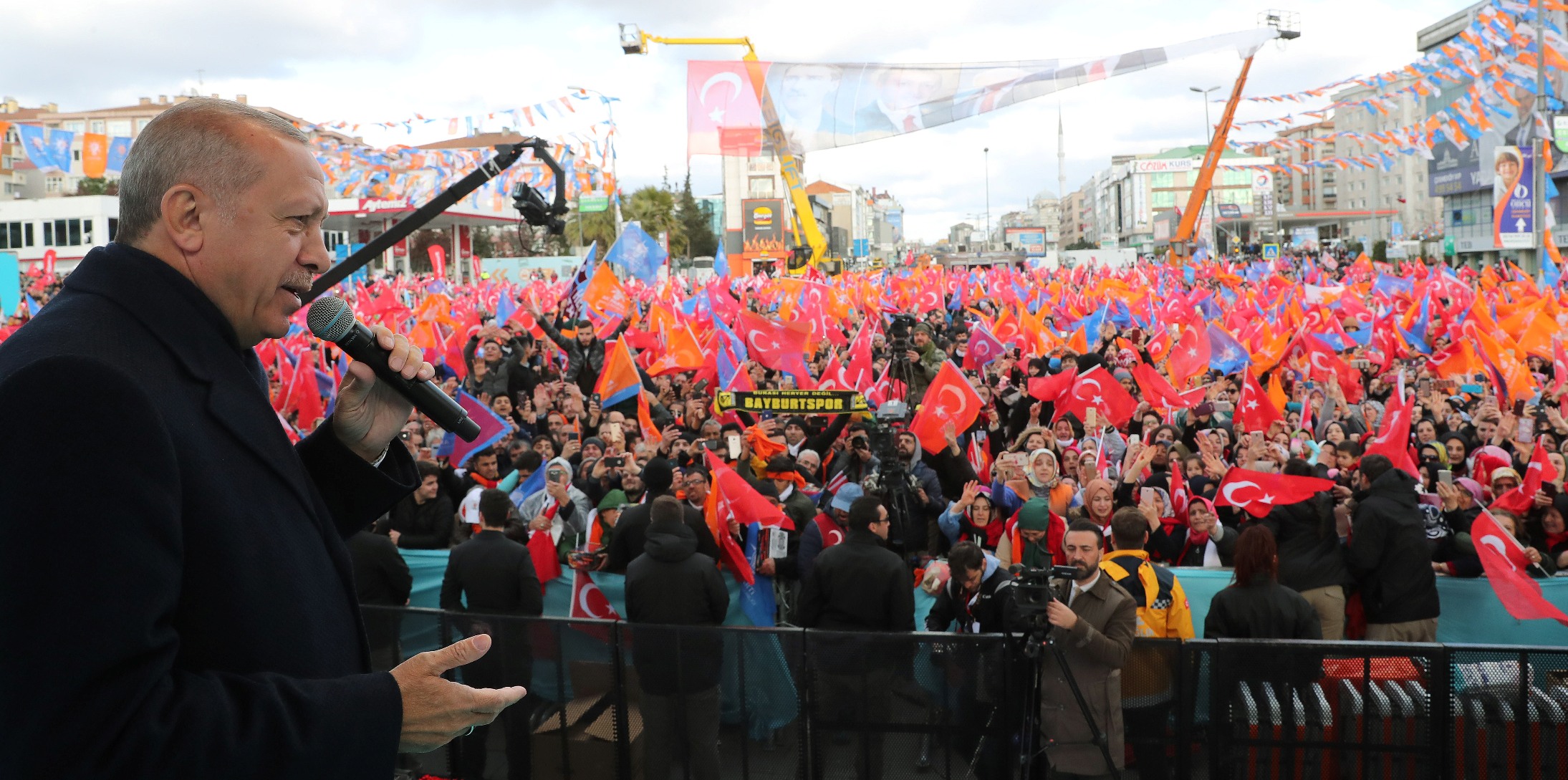 "Ama asıl önemlisi, nasıl büyüdüğünüz, nereye doğru büyüdüğünüzdür. CHP ne yapacak? Çıkmışlar ekonomiyi konuşuyorlar. Ne ekonomisi şu anda? Belediyeler, gelip de Türkiye'nin ekonomisini mi düzeltecek. Belediyelerin ekonomiyi düzeltmek gibi bir imkanı, bir gücü var mı? Önce onlar, bir defa belediyeyi nasıl yönetecekler onu öğrensinler. Bunların bir çoğu maaş ödeyemez. Türkiye'nin ekonomisi kimin elinde? Bizim elimizde, Türkiye hükümetinin elinde. 4,5 yıl... Bizi ne yaptılar, mahalli seçimlerle aldatmak istiyorlar. Bunun için de yok bilmem ekonomik kur, faiz, enflasyon, ne alakası var bunun bununla, vatandaşımı aldatmak istiyorlar. Dertleri bu. Tutmadı şimdi. Şimdi yeni raporlar veriyorlar. 'Bundan sonra bir ay kala seçimden öncesinde rapor vermeyeceğiz.'. İyi ki aklınız başına geldi. Hey George, size daha çok hesap soracağız, çok. Türkiye'yi bu yollarla terbiye edemeyeceksiniz. Bunun bedelini de ağır ödeyeceksiniz."