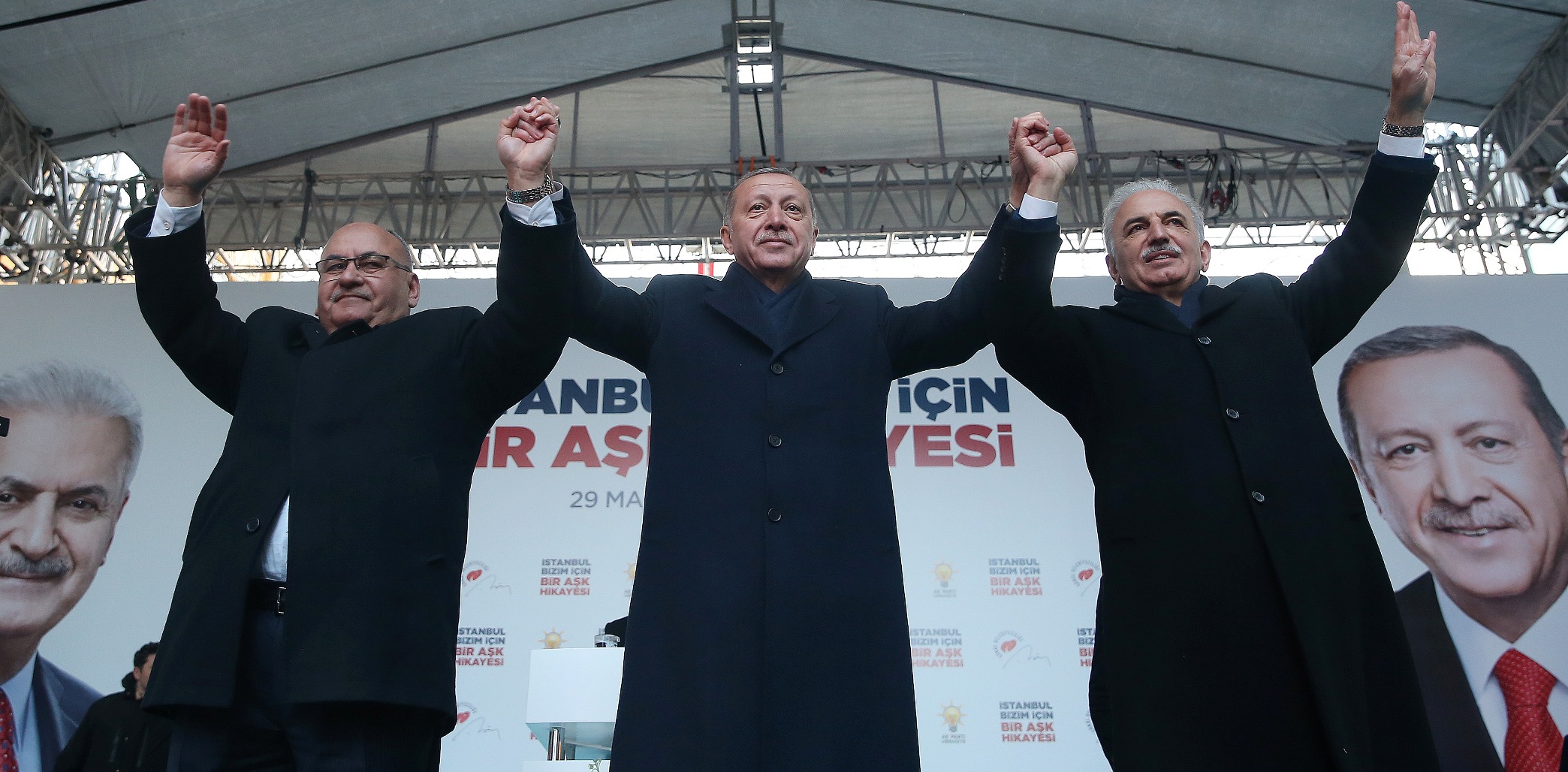 Cumhurbaşkanı olarak kendisinin, kabinenin 4,5 sene işbaşında olacağını ifade eden Erdoğan, "İstanbul'da da Binali Yıldırım kardeşim Büyükşehir Belediye Başkanı olursa bir şüpheniz var mı? Yapacağız değil mi? Kararlıyız değil mi? Öbür taraftan Çekmeköy'de de Ahmet kardeşimiz 'durmak yok, yola devam' derse buna da var mıyız? O zaman üçlü mekanizmayı kuruyoruz. Ne yapacağız? Ankara, İstanbul Büyükşehir, ilçe el ele vereceğiz, Çekmeköy'ü daha da ilerilere taşıyacağız. Burada sizin desteğinize ihtiyacım var." diye konuştu.