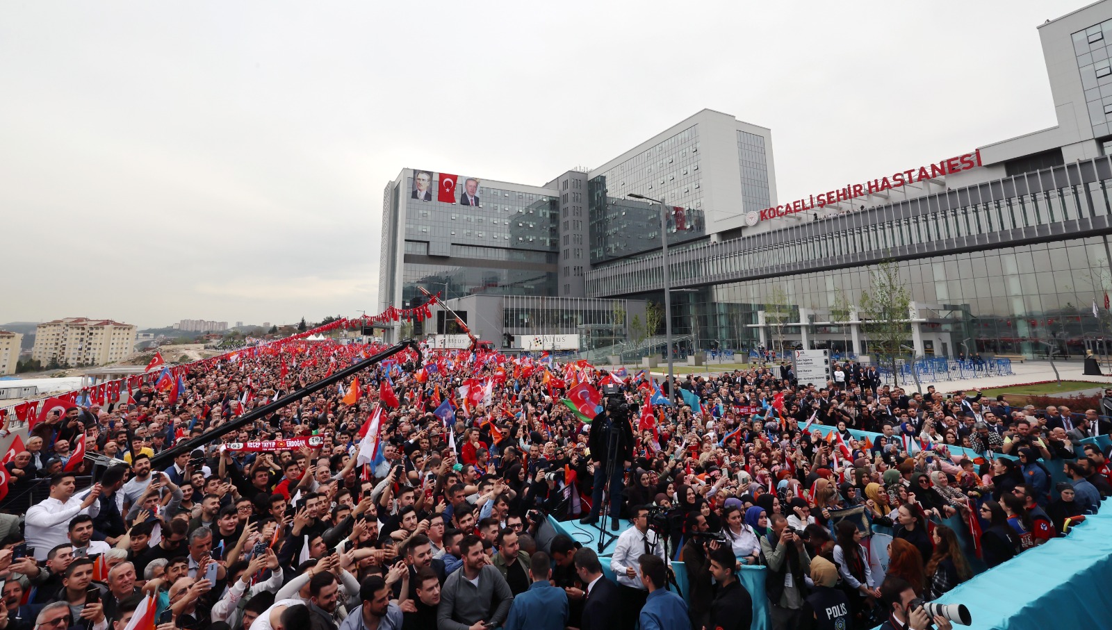 Deprem izolatörlü modern inşaatıyla her türlü imkâna ve birikime sahip olan 1218 yatak kapasiteli Kocaeli Şehir Hastanesi ile iftihar ettiğini dile getiren Cumhurbaşkanı Erdoğan, ülkenin zenginlerine "Artık hastalarınızı Cleveland'a göndermeyin. İşte Cleveland burada. Doktorsa elhamdülillah doktorlarımız da onlardan geri değil." diye seslendi.