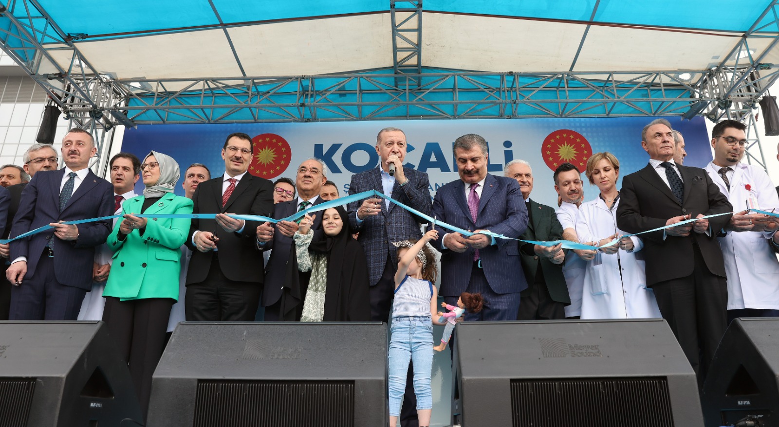 Cumhurbaşkanı Erdoğan, "Muhteşem Kocaeli Şehir Hastanesi'ni görüyorsunuz. Rabbim ya Şafi, ya Kâfi, ya Muafi şerifleri hürmetine inşallah burayı bir şifa kaynağı olarak tüm insanımızın hizmetinde memur eylesin. Bütün doktor kardeşlerimin Rabbim gayretlerini artırsın. Hemşirelerimizin, sağlık memurlarımızın gayretlerini artırsın." diyerek kurdeleyi kesti.